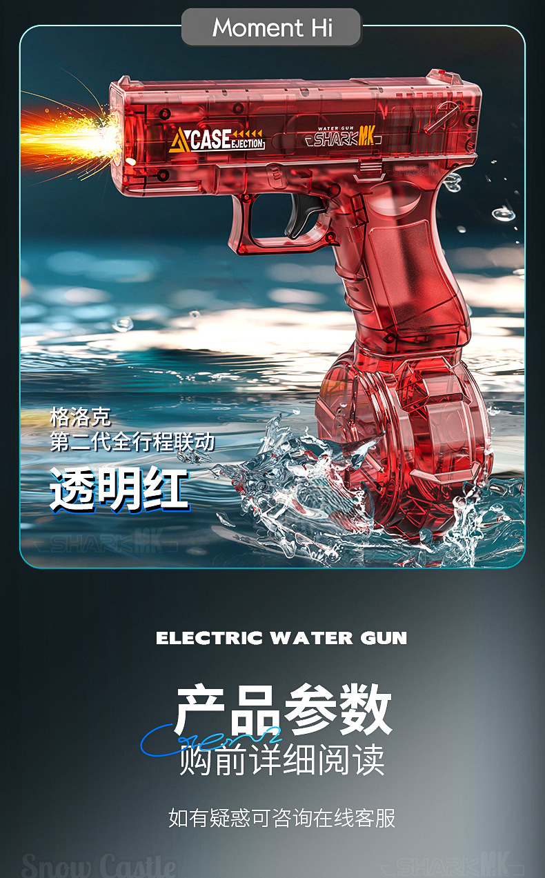 - 【透明红-喷火版】高速联动格洛克水枪(英文彩盒)