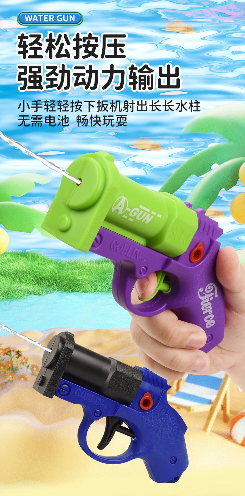 哥布林水枪手动连发枪格洛克滋水枪1911男孩喷水枪玩具打水仗