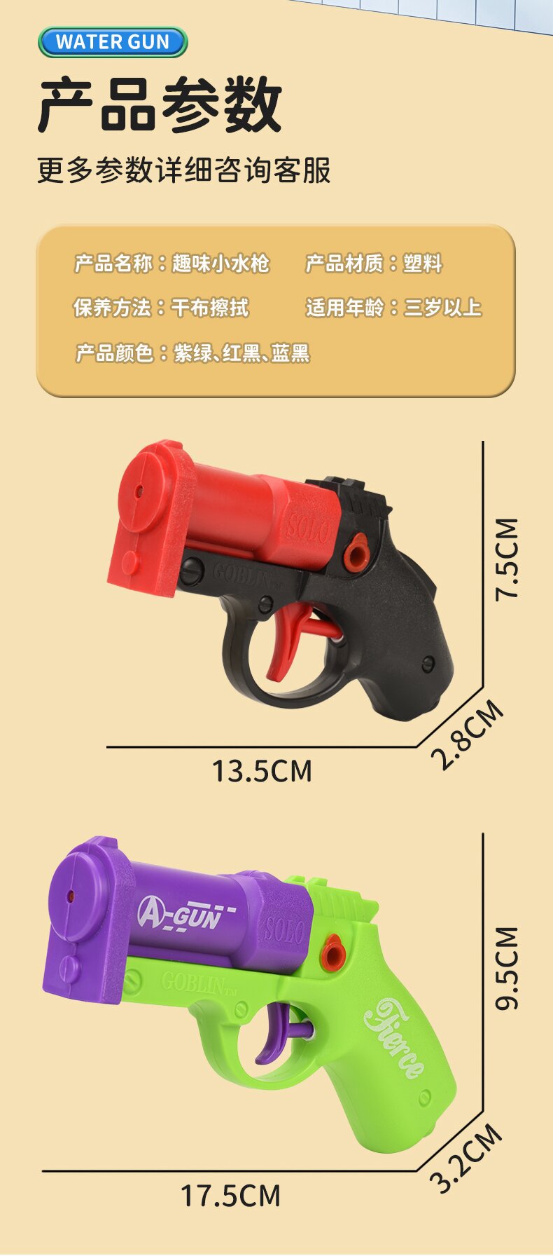 - 【紫绿】小号哥布林水枪13.5cm(OPP袋装)
