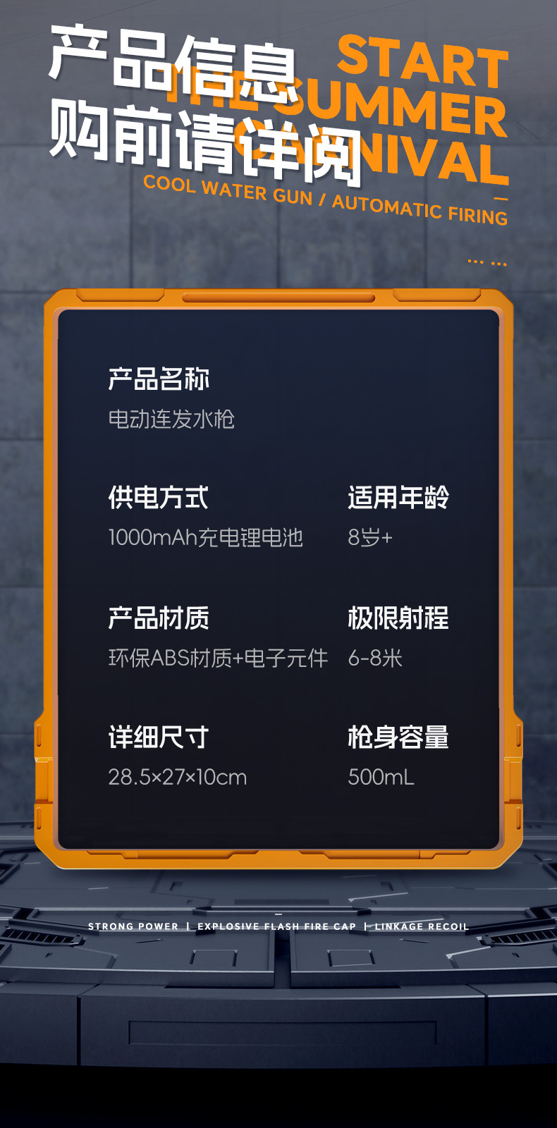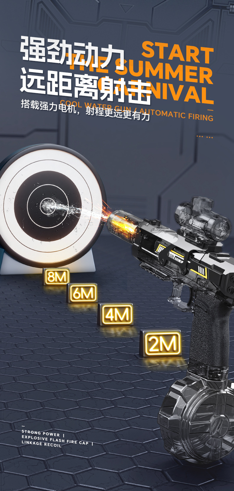 2025新款火光小冰鼠电动水枪玩具大容量高速连发水枪儿童戏水玩具