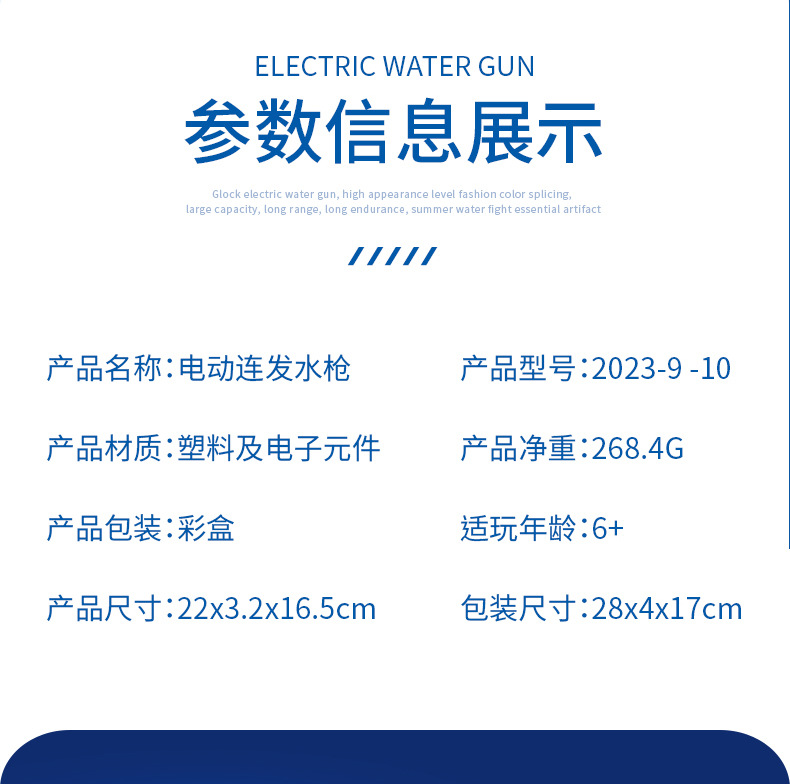 - 2023-11C蓝白色水枪带2个弹仓268.4g