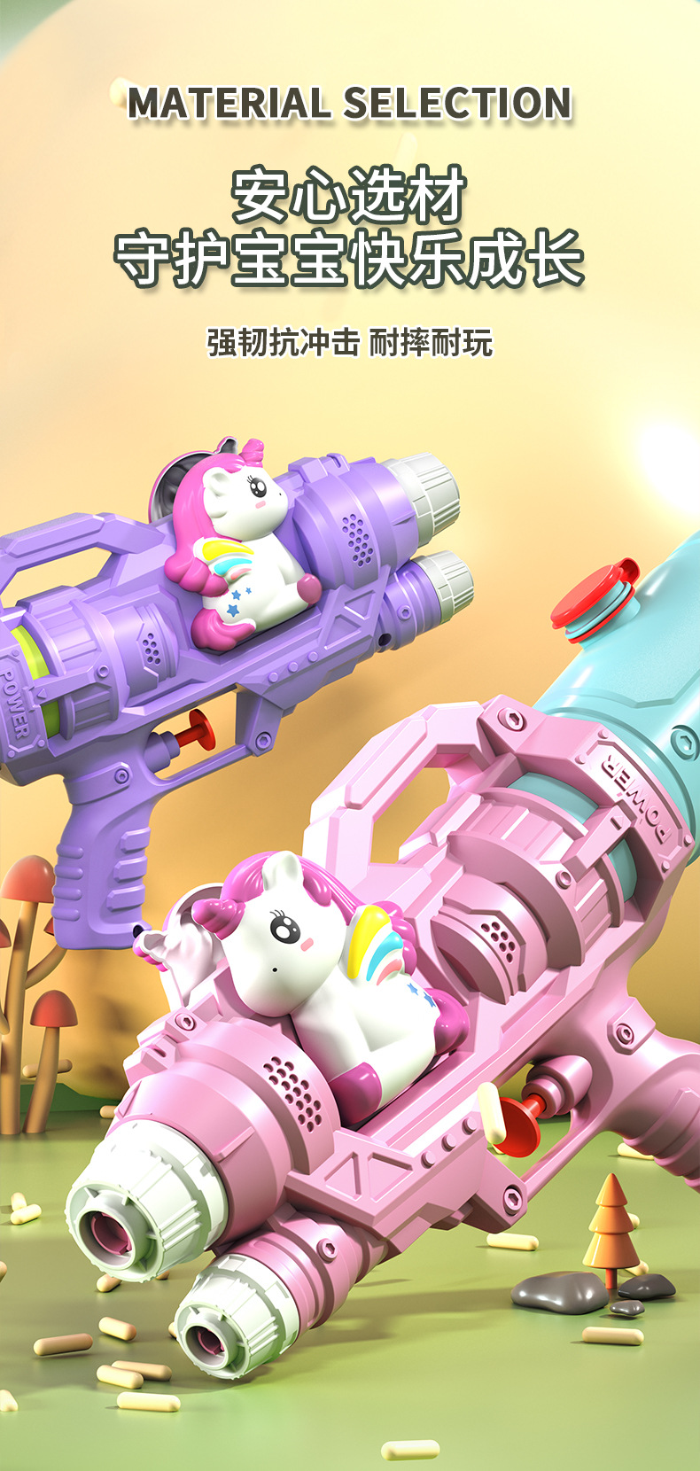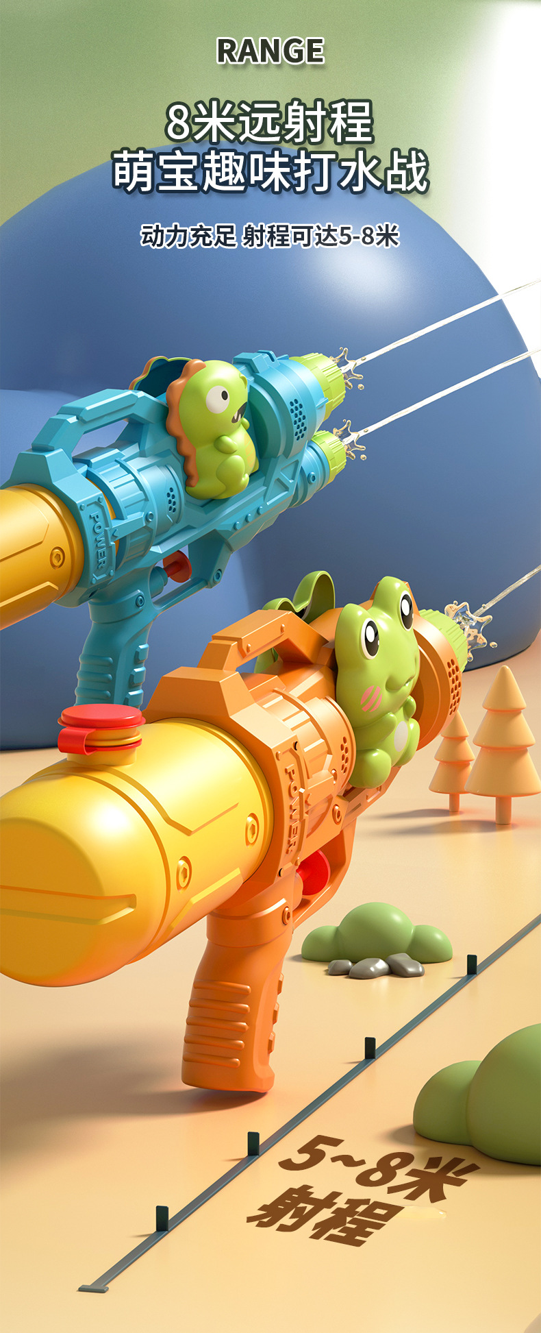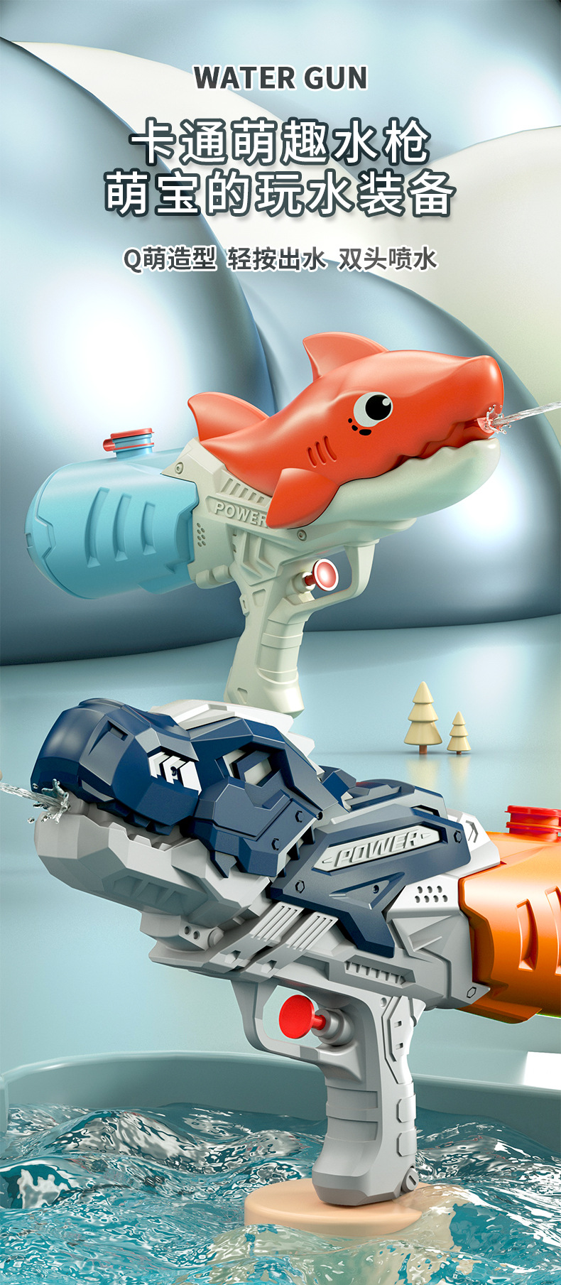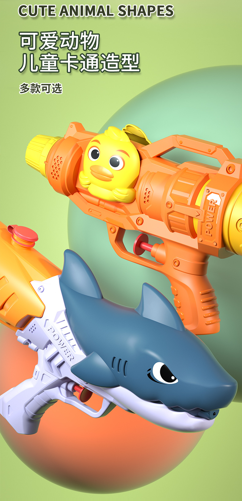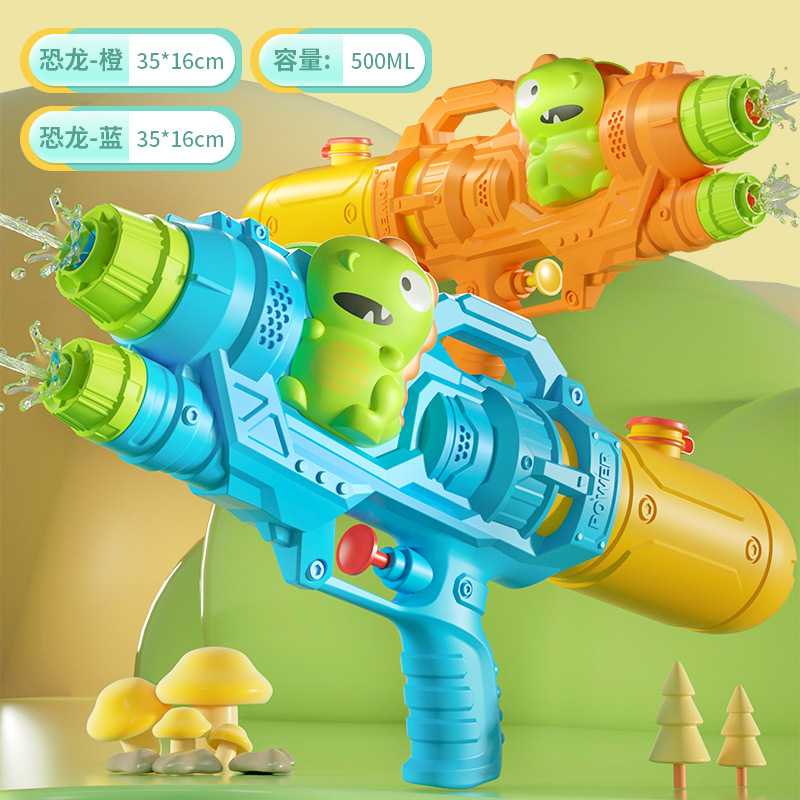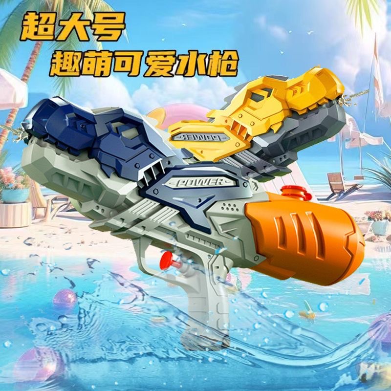 新款儿童水枪玩具网红双喷头戏水枪小马恐龙鸭子鲨鱼抽拉式滋水枪