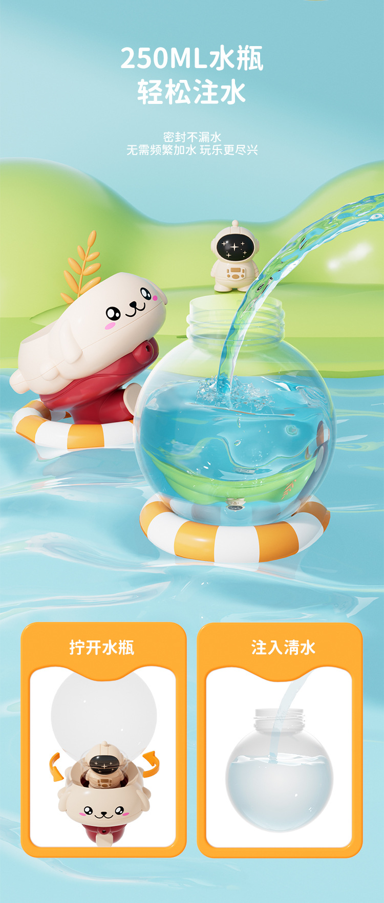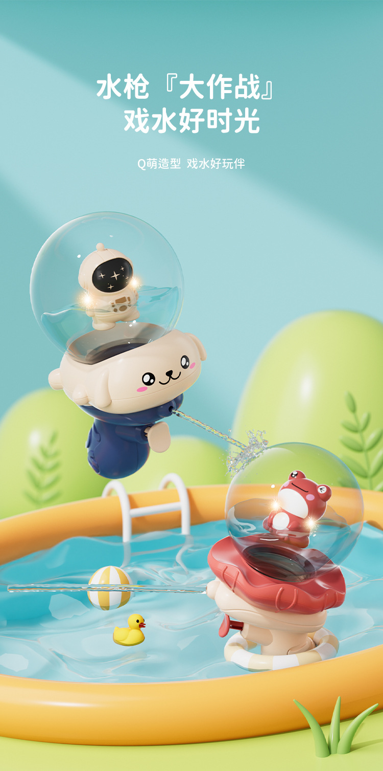 网红儿童戏水呲水枪漂流太空人发光透明球小水枪可爱