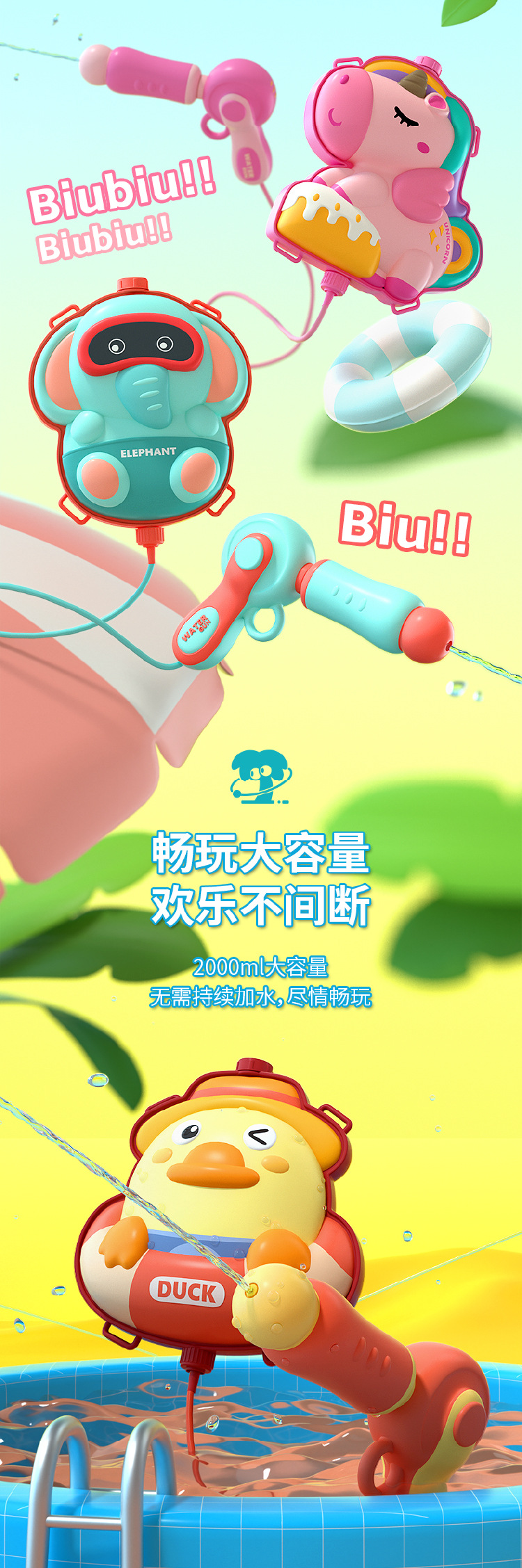 【冲浪黄鸭鸭】2L大容量背包水枪