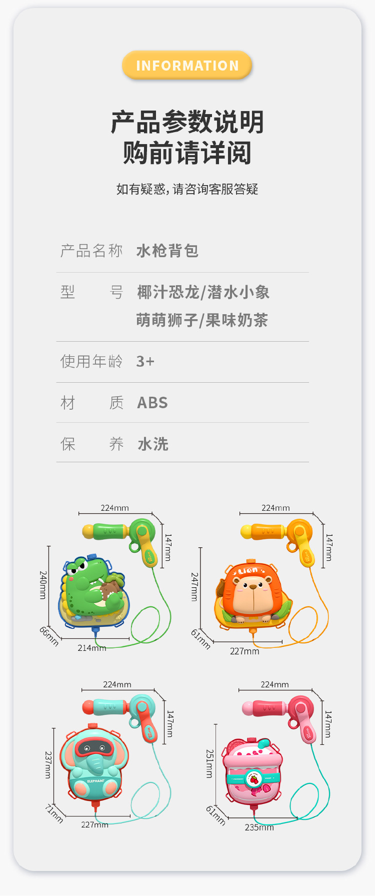 背包水枪儿童玩具背带式喷水抽拉式戏水喷水枪卡通男女孩