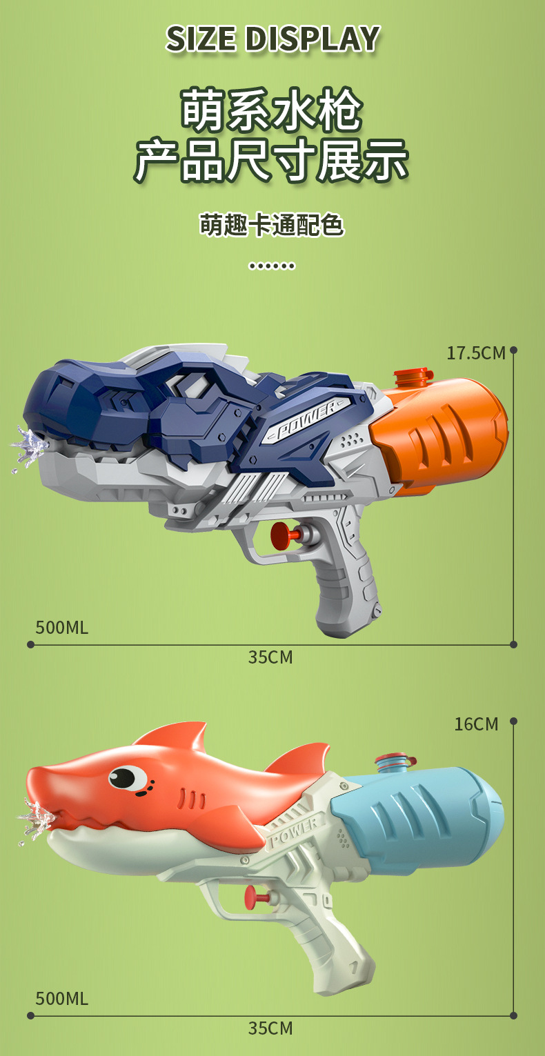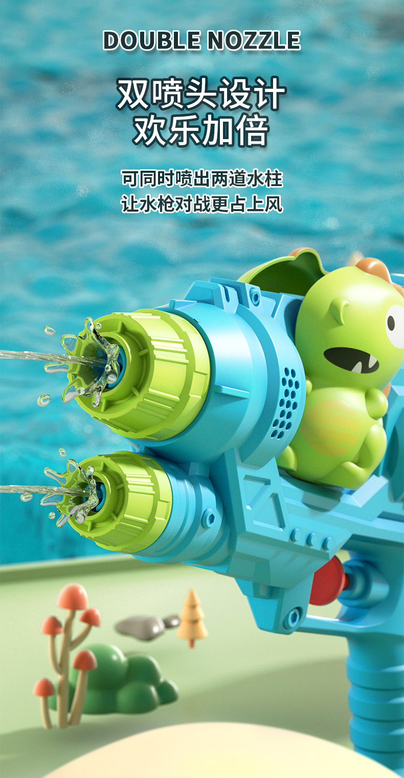 新款儿童水枪玩具网红双喷头戏水枪小马恐龙鸭子鲨鱼抽拉式滋水枪