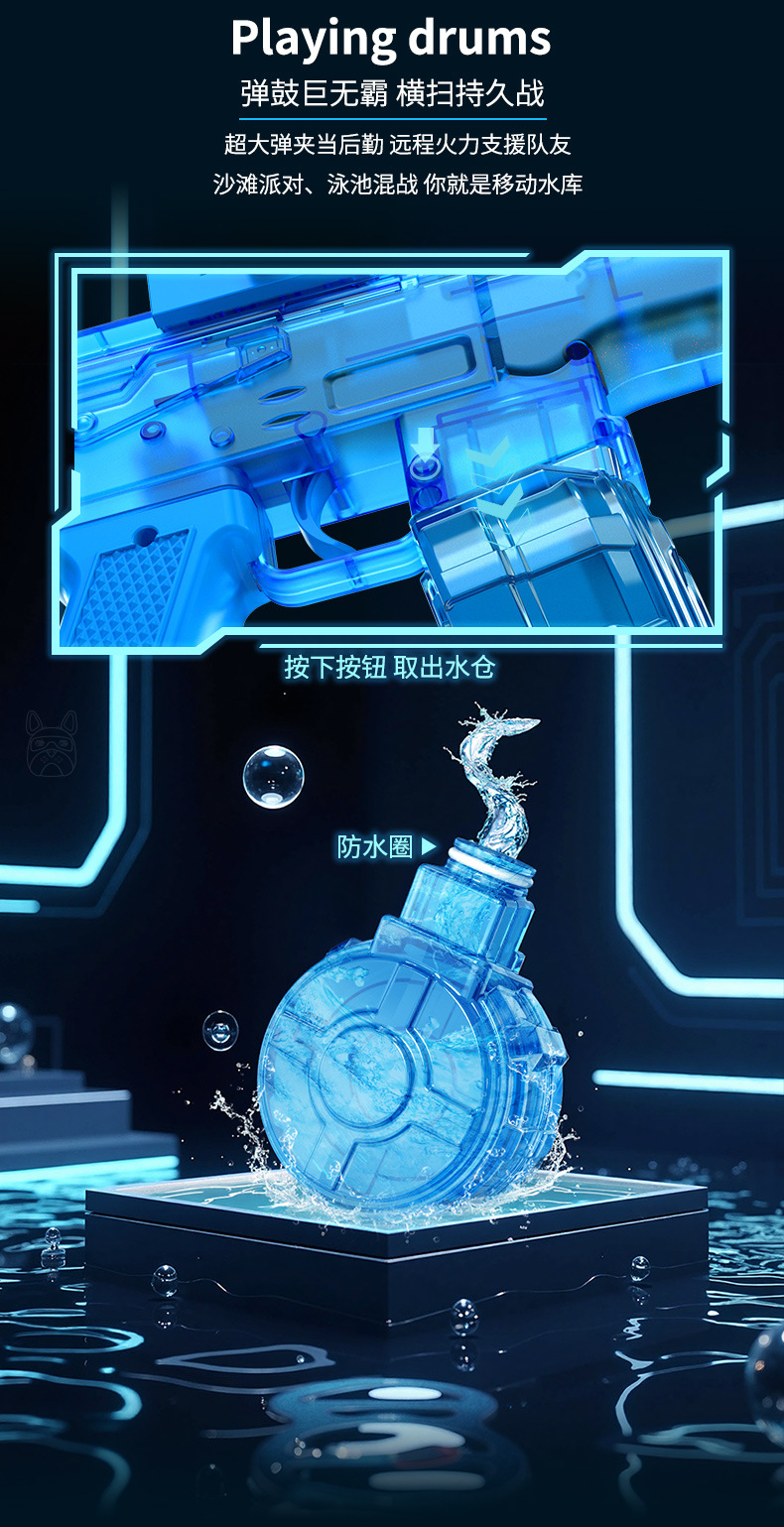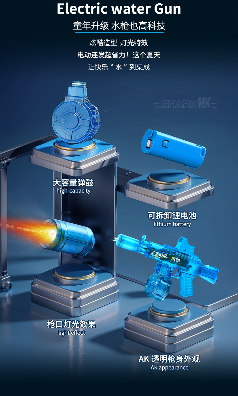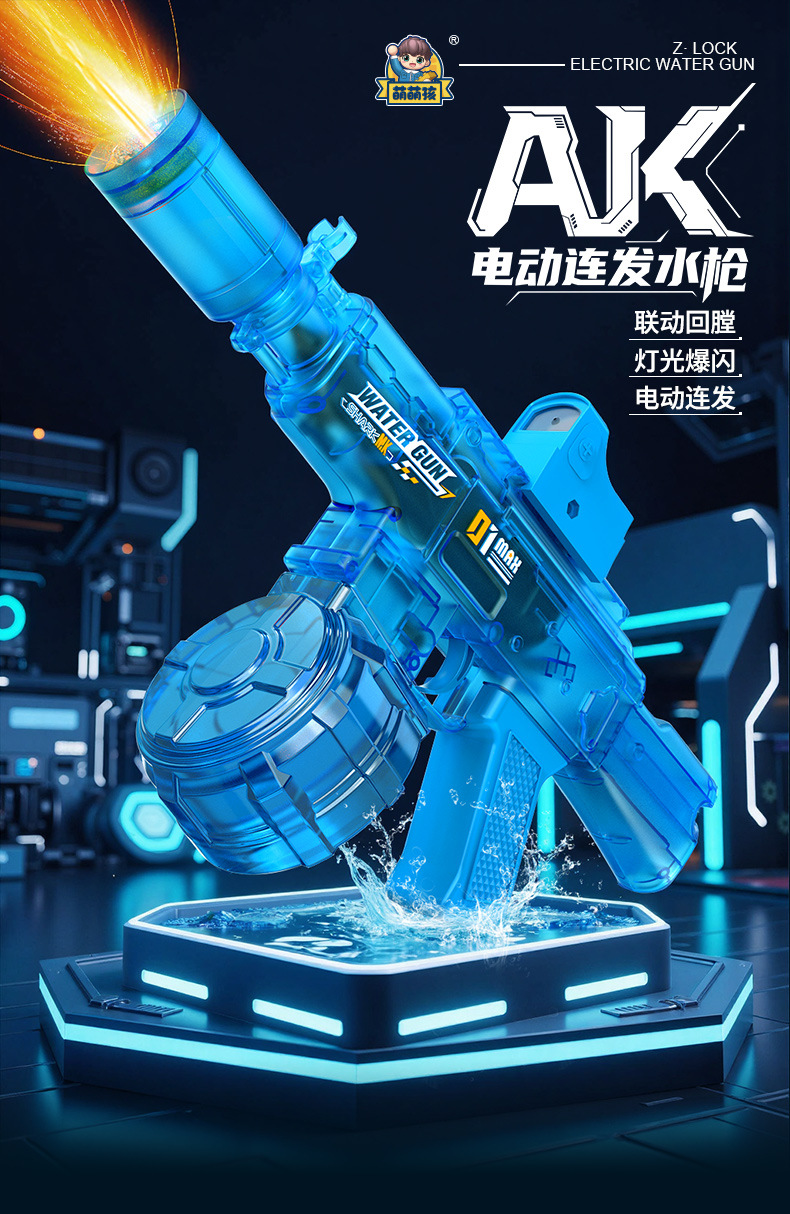 【蓝色】AK电动连发水枪-爆闪灯光/自动回膛
