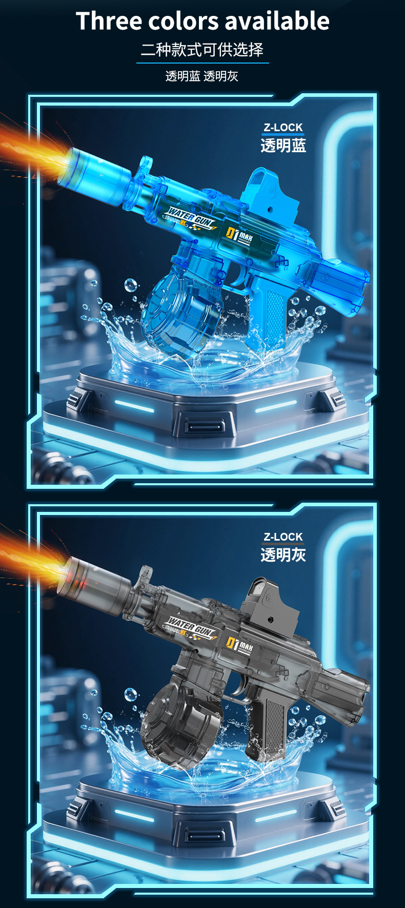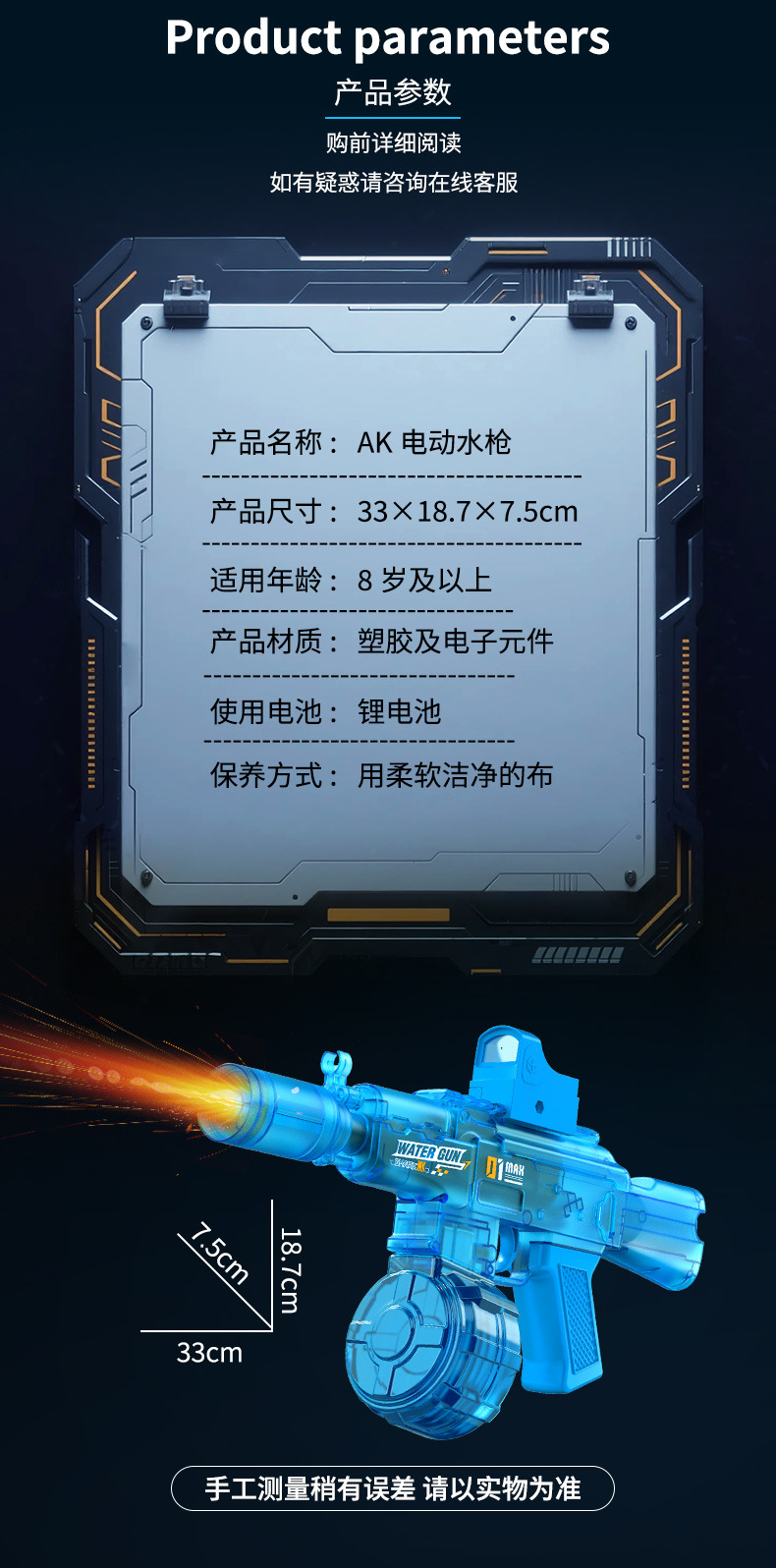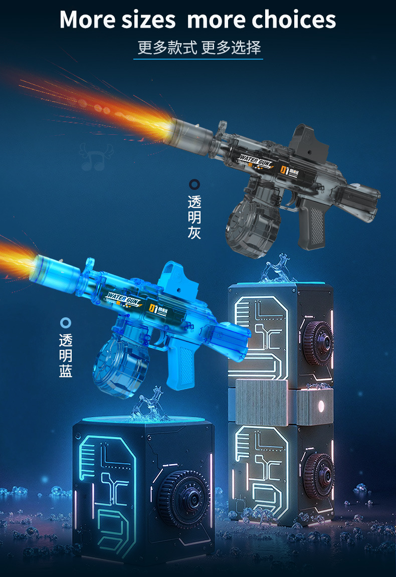 【蓝色】AK电动连发水枪-爆闪灯光/自动回膛