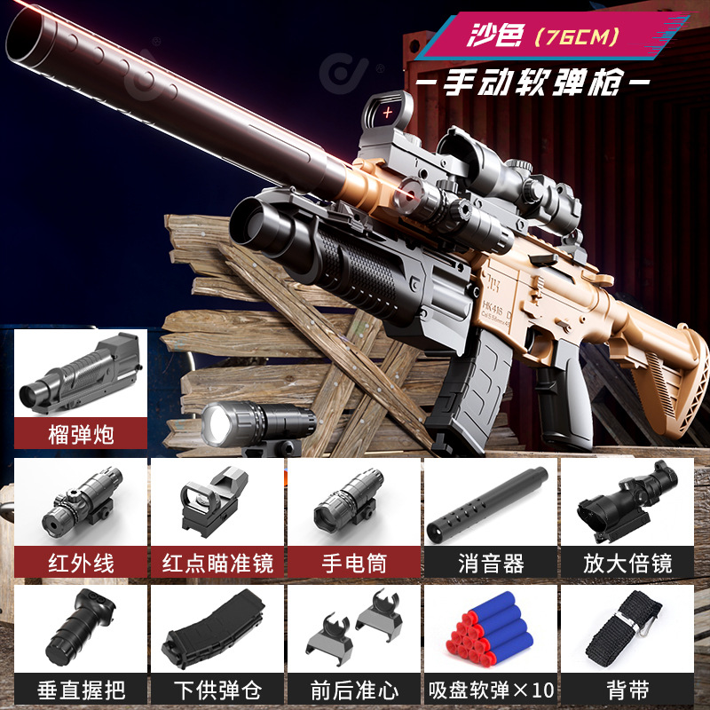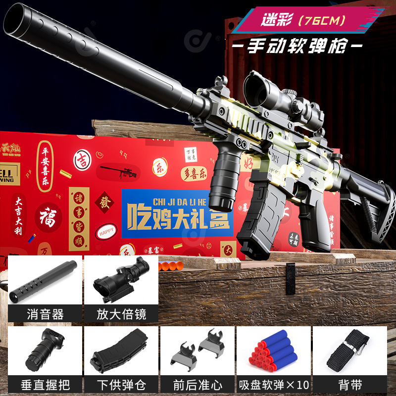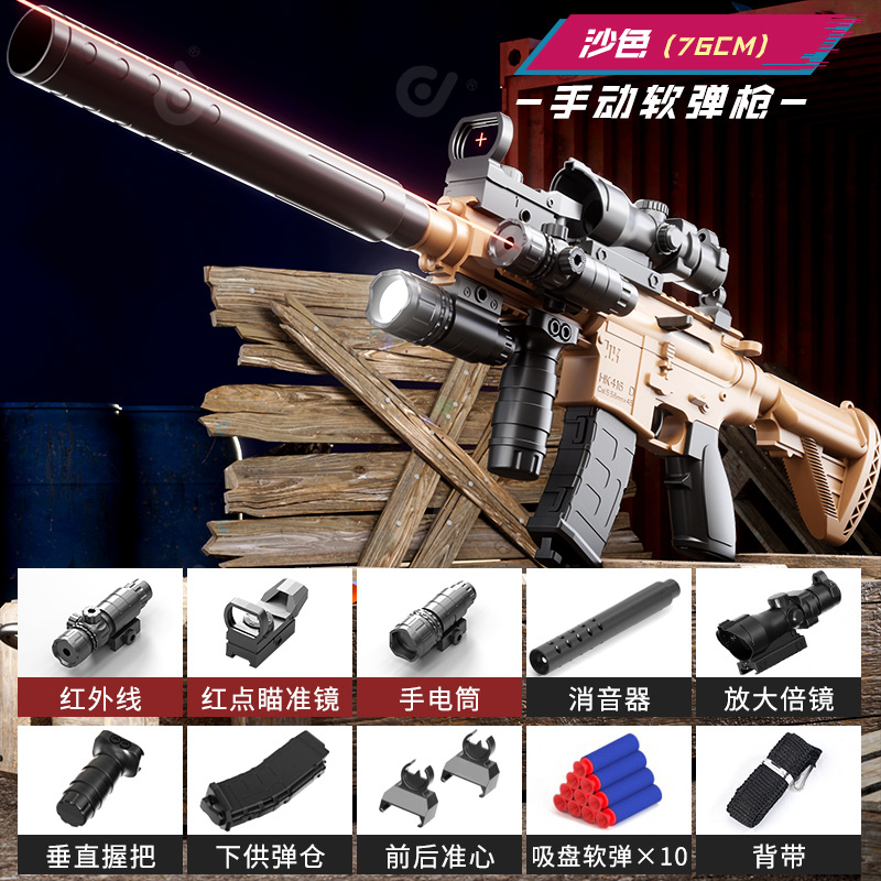 儿童M416手动拉栓单发玩具枪仿真男孩枪玩具软蛋吃鸡