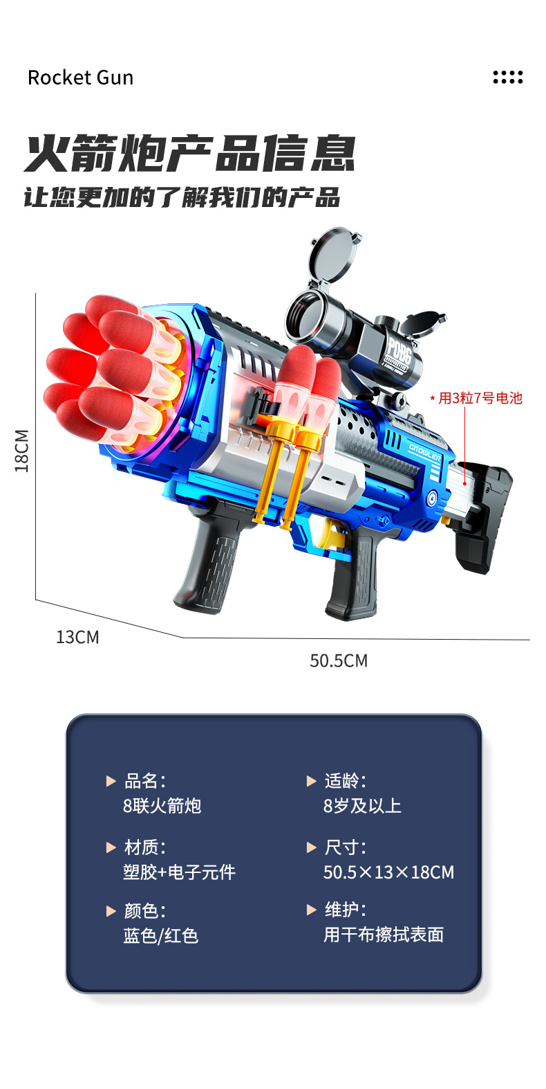 蓝色超大号发光火箭炮(8发)+电池【不带红外线】