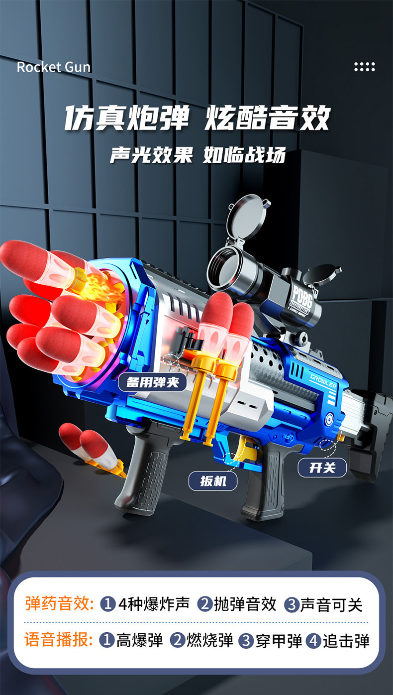 大号儿童声光电动软弹枪连发火箭炮仿真对战玩具枪男孩生日礼物