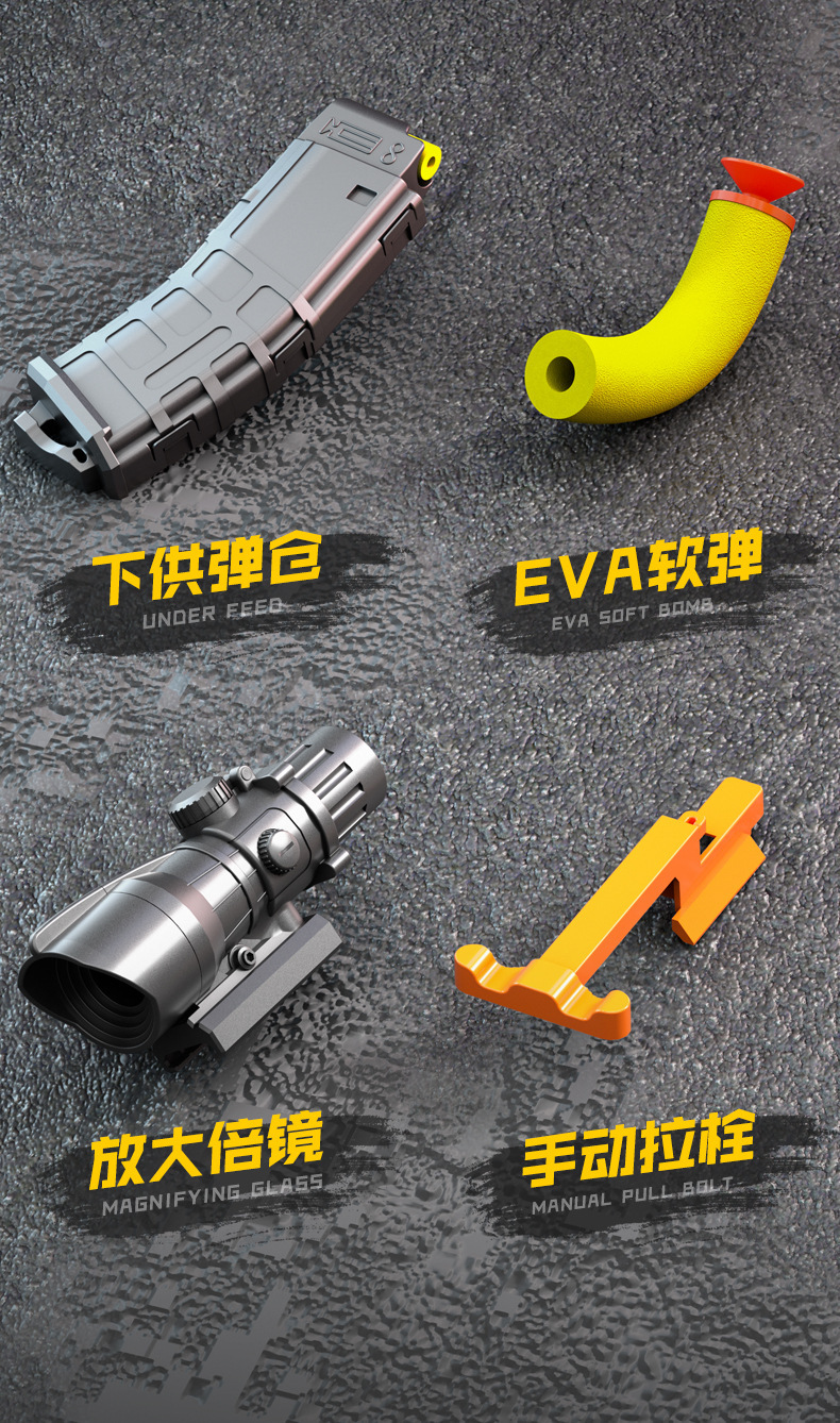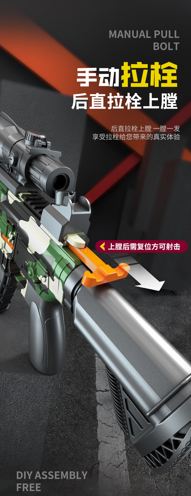 M416手动下供拉栓软弹玩具枪儿童单发仿真