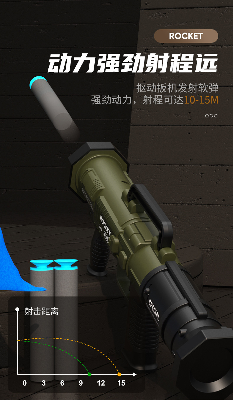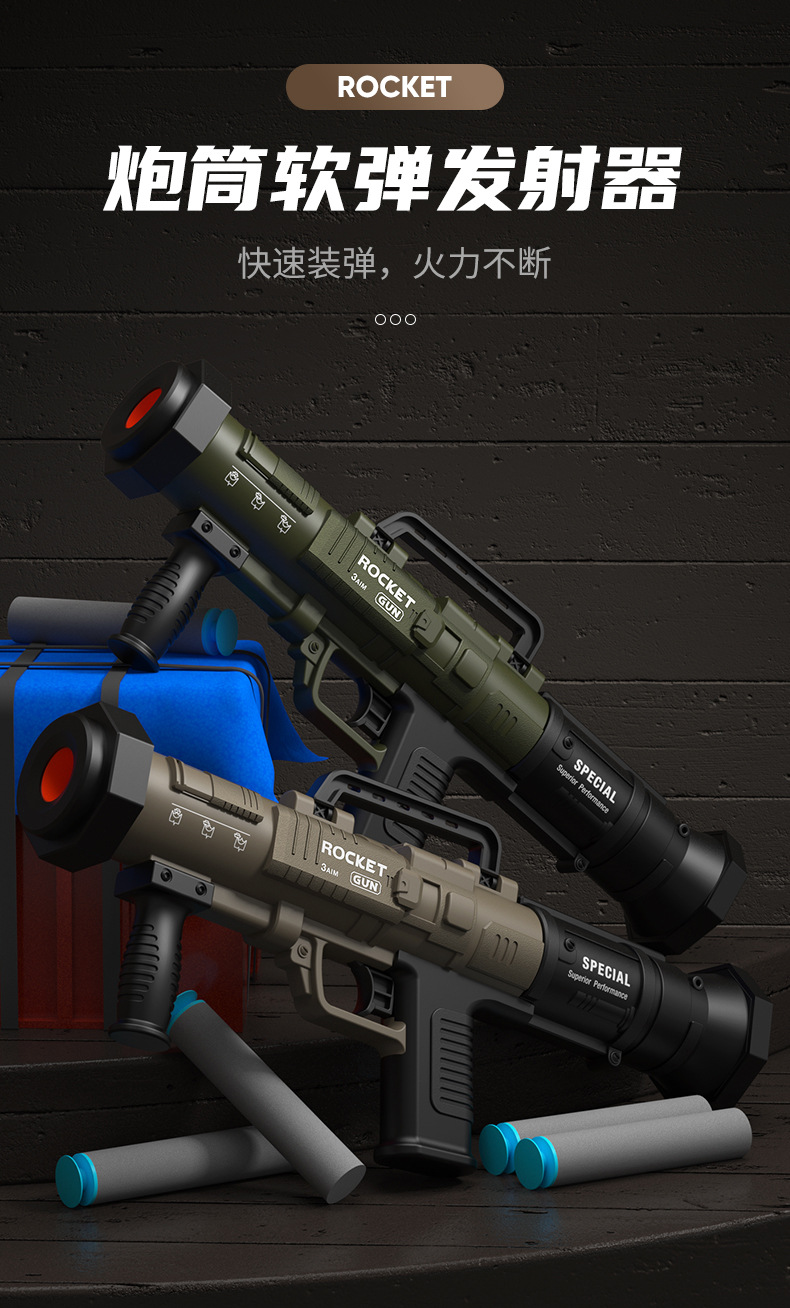 儿童RPG火箭炮发射器软弹枪玩具枪男孩仿真火箭筒模型手动上膛