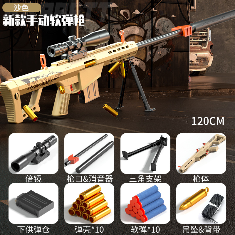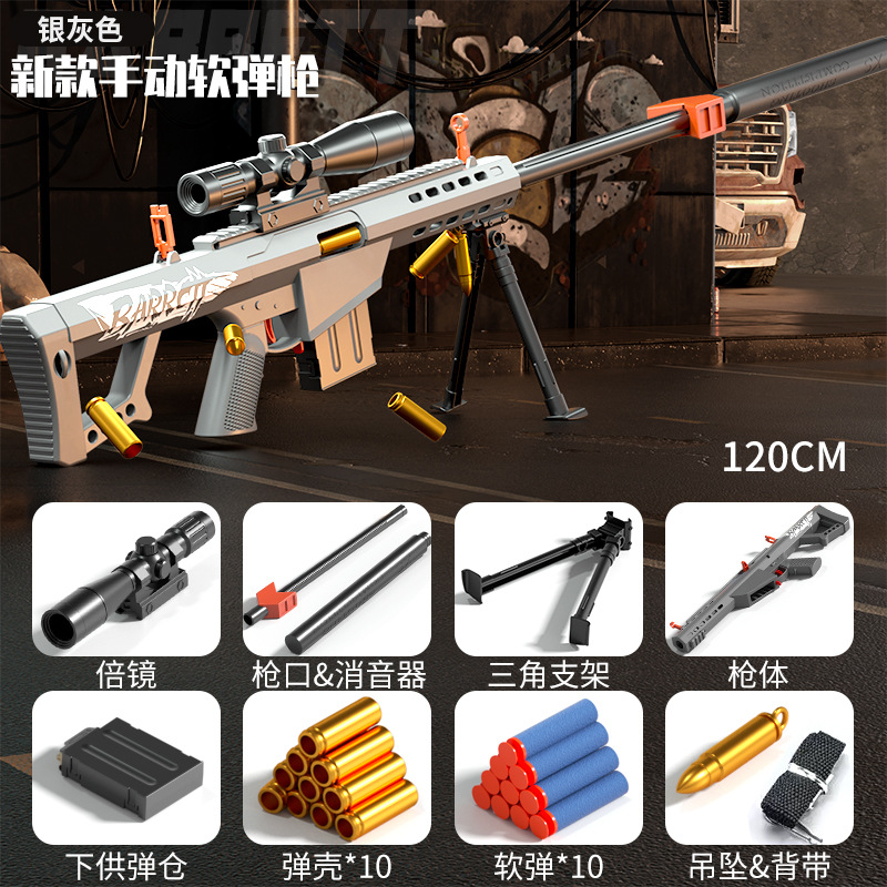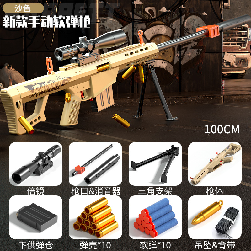 巴雷特抛壳狙击软弹枪手动拉栓儿童玩具仿真男孩吃鸡