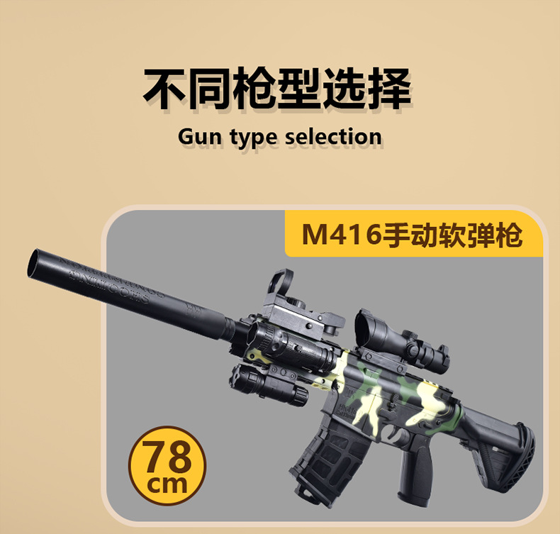 儿童软弹枪M416手动拉栓单发玩具枪仿真男孩枪玩具枪吃鸡