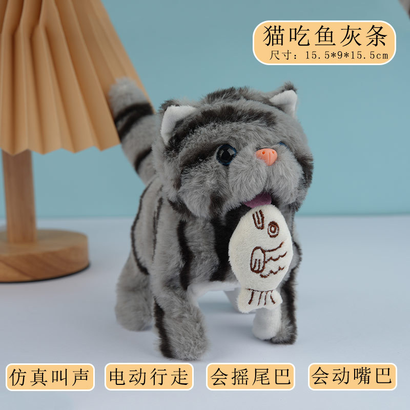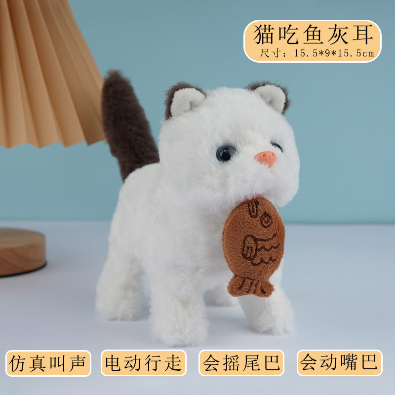 - 猫吃鱼-白色(灰耳)仿真叫声