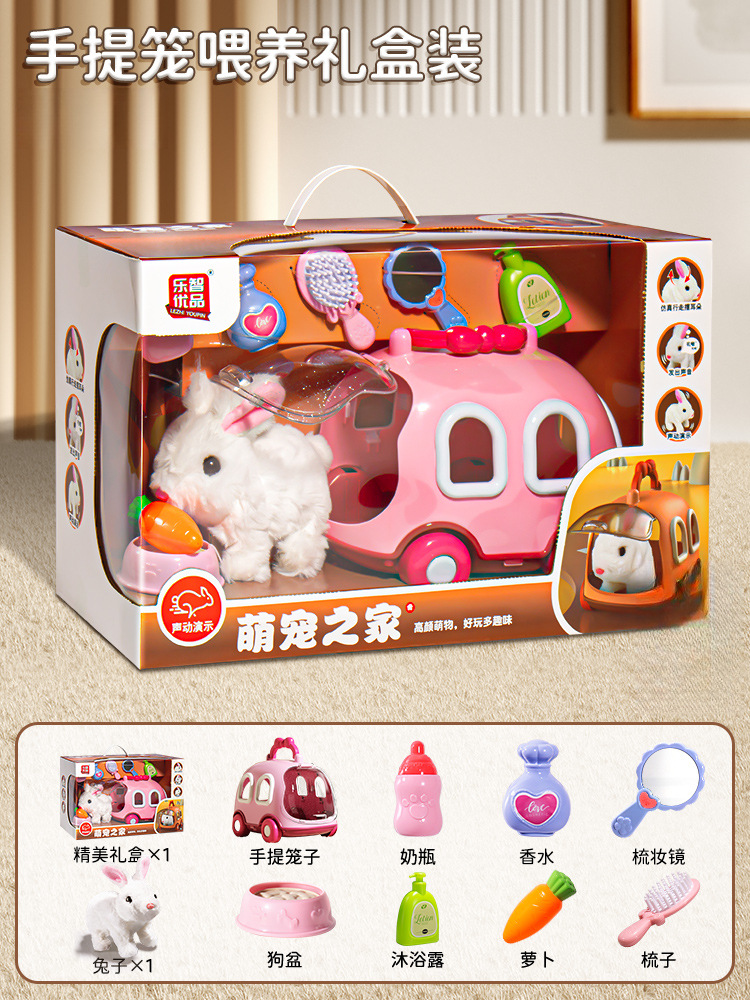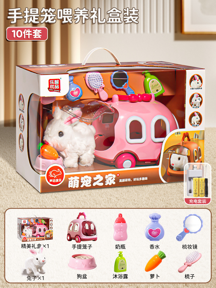 - 小白兔喂养套装【礼盒宠物笼】+充电