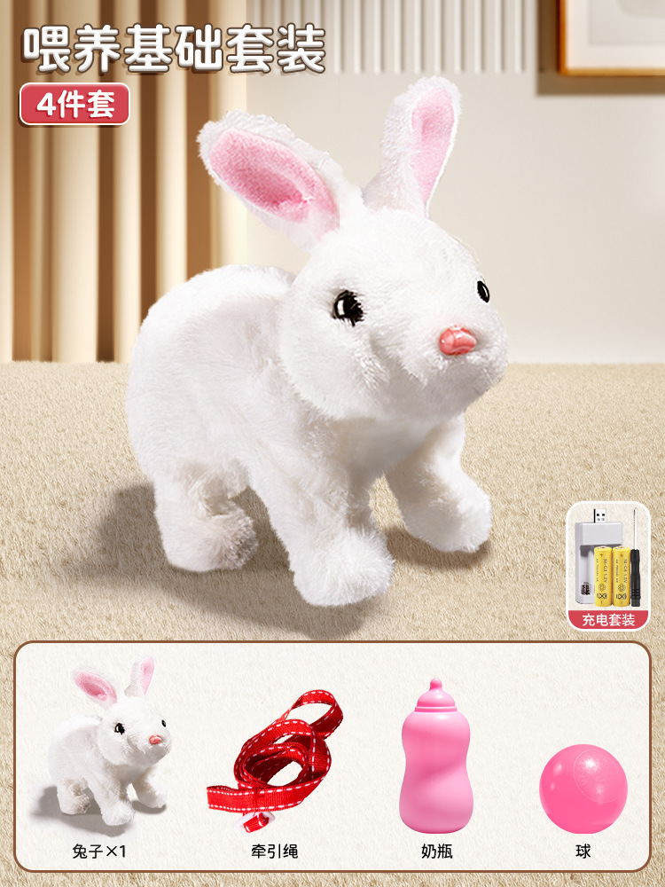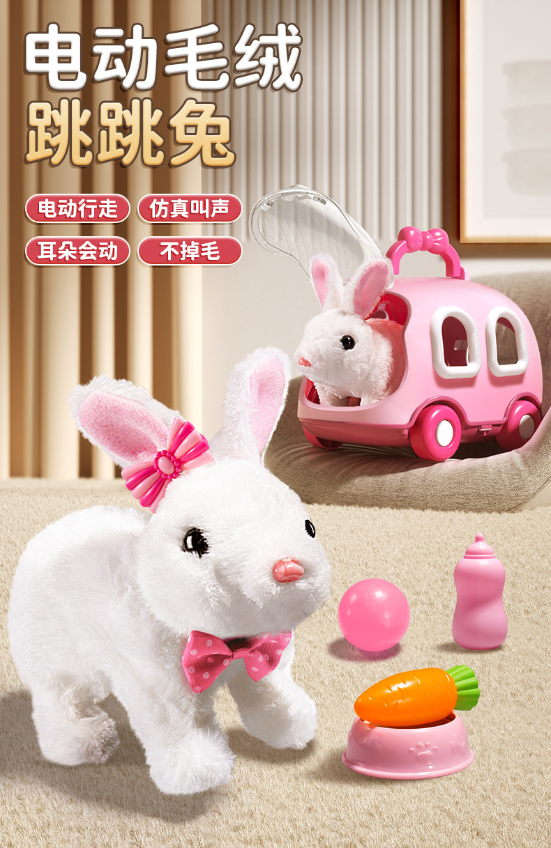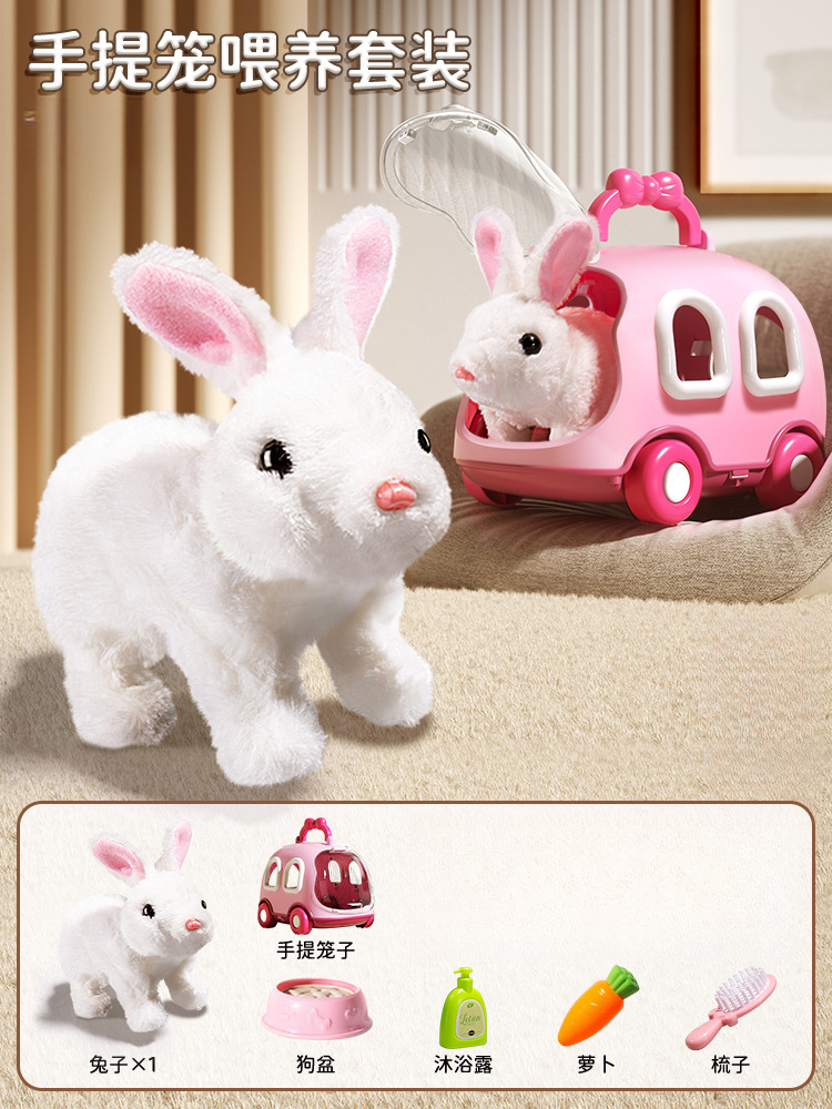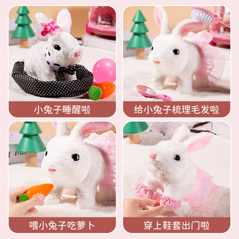 儿童电动仿真小兔子毛绒玩具女孩宠物小白兔玩偶公仔女生生日礼物