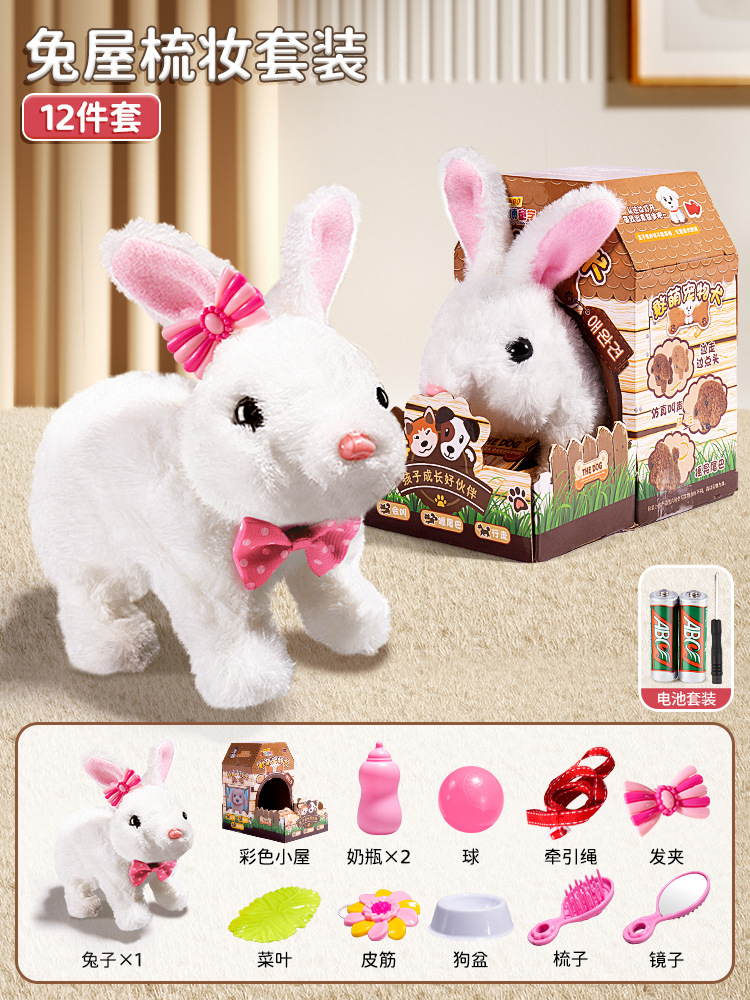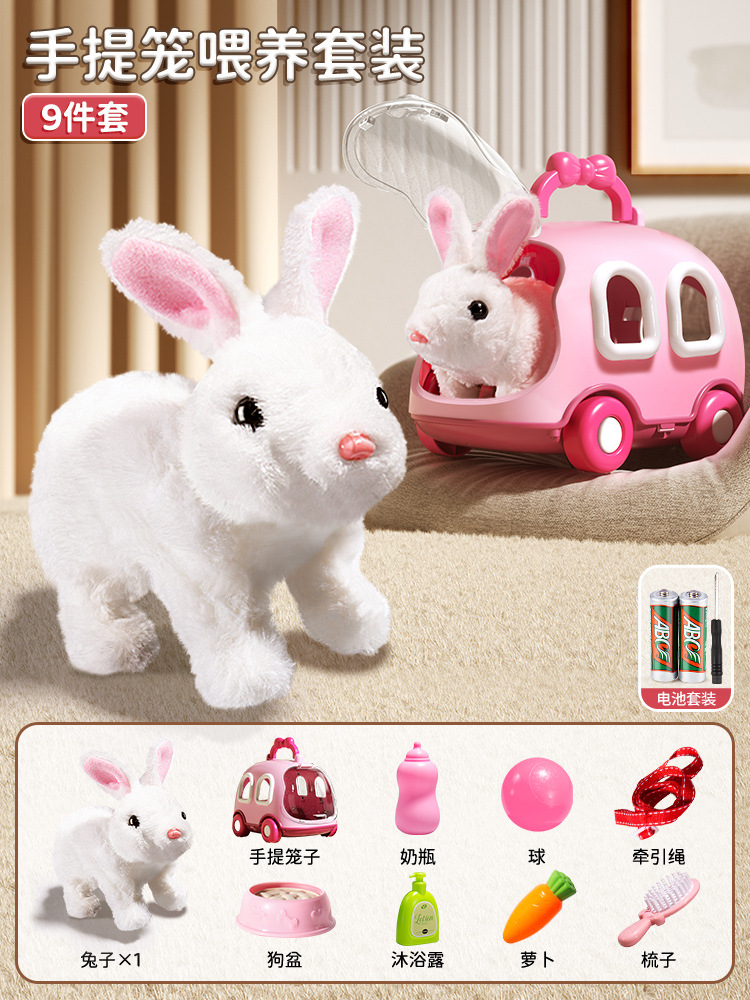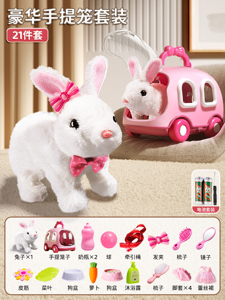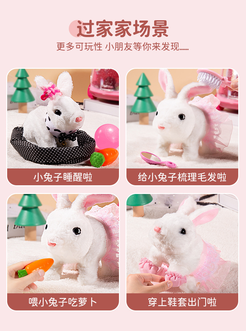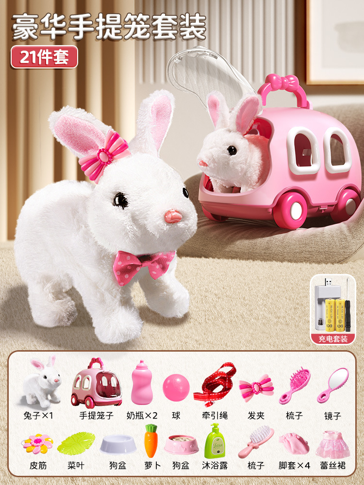 儿童电动仿真小兔子毛绒玩具女孩宠物小白兔玩偶公仔女生生日礼物