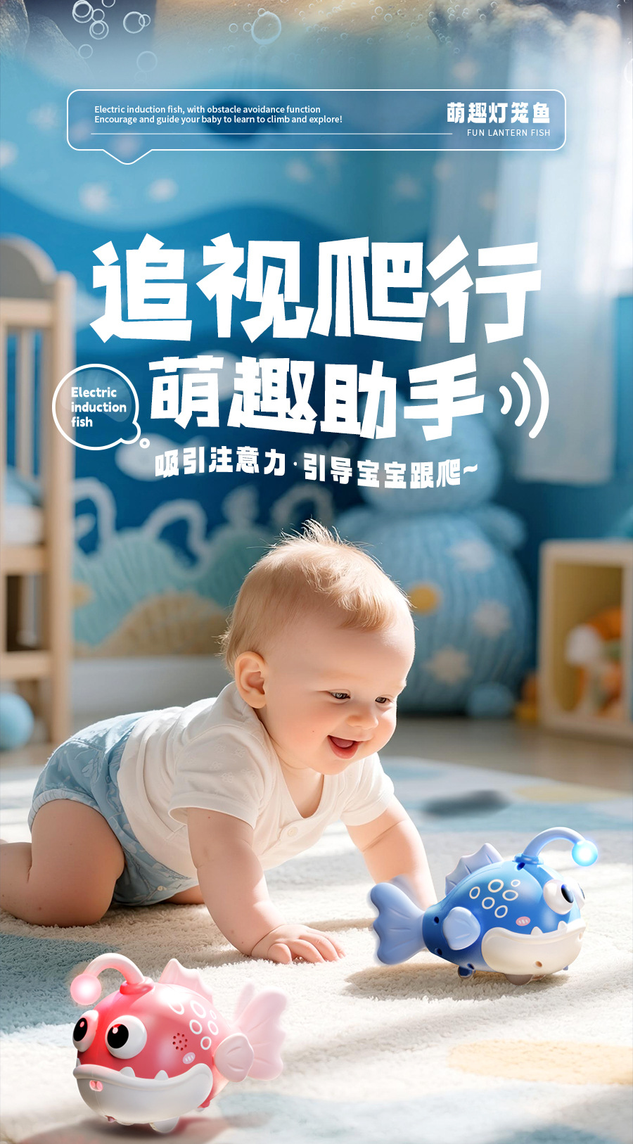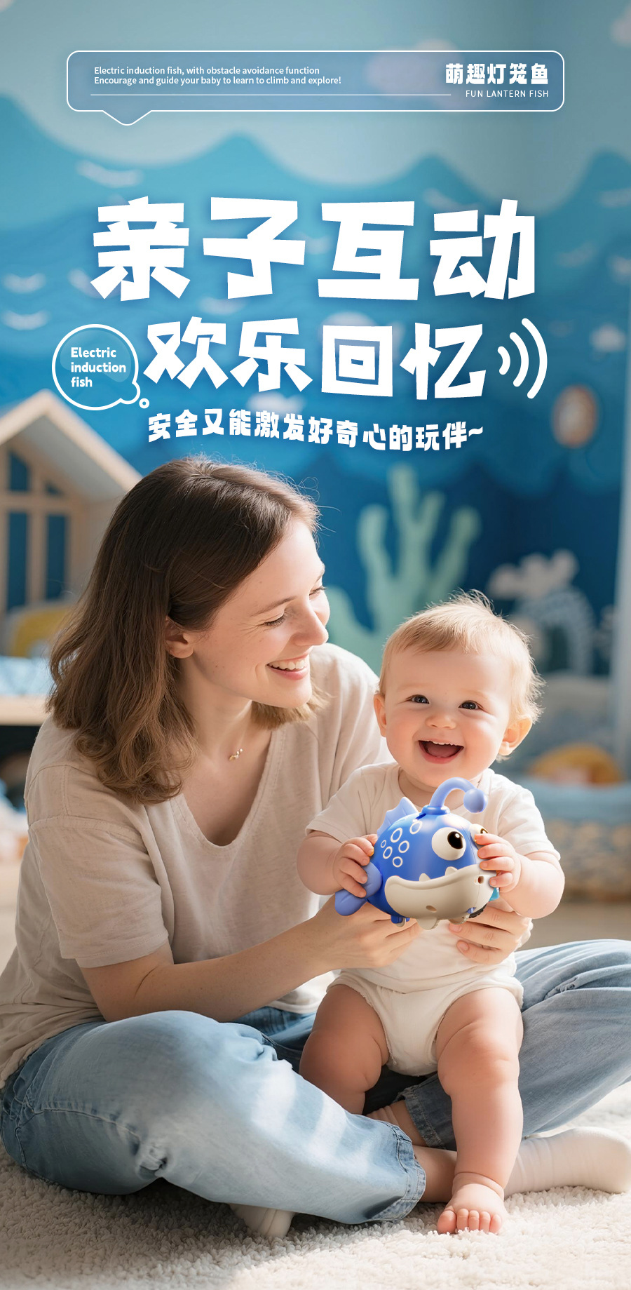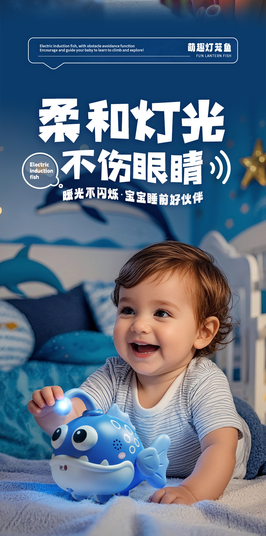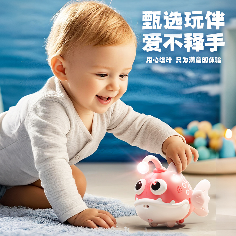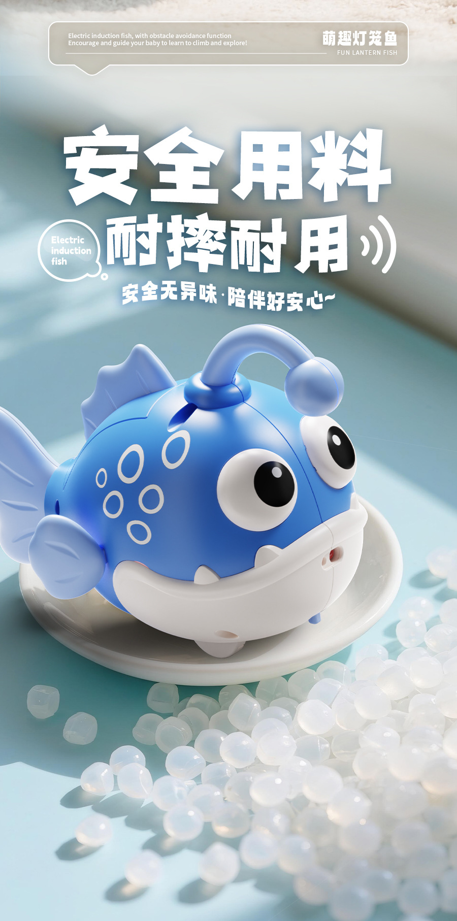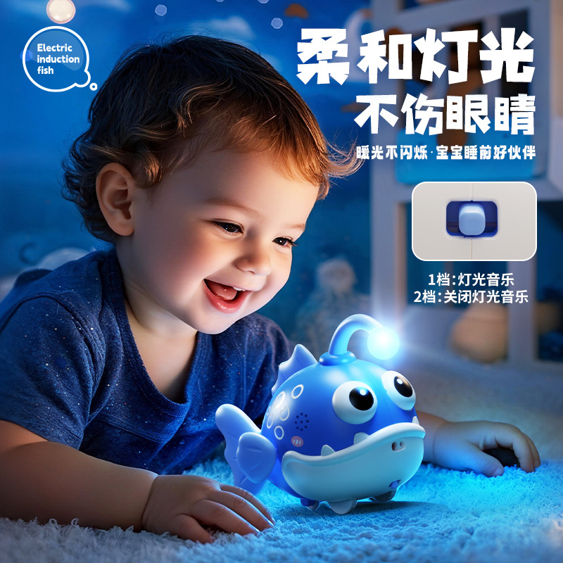 电动仿真摇摆鱼宝宝学爬智能感应灯光音乐小丑鱼魔性跳舞抬头玩具