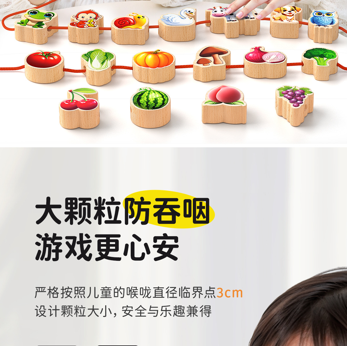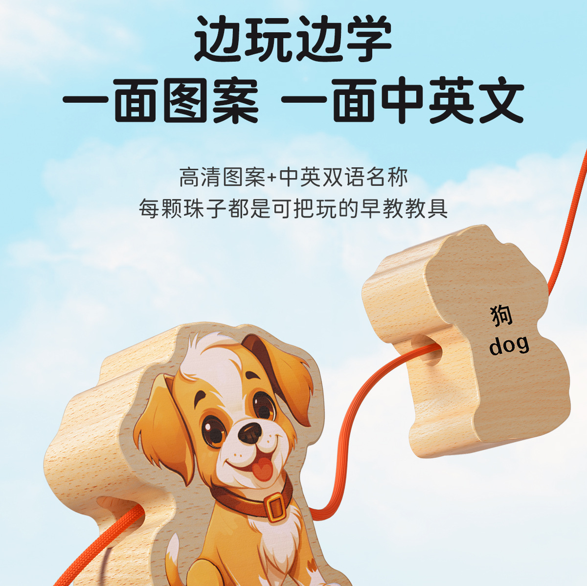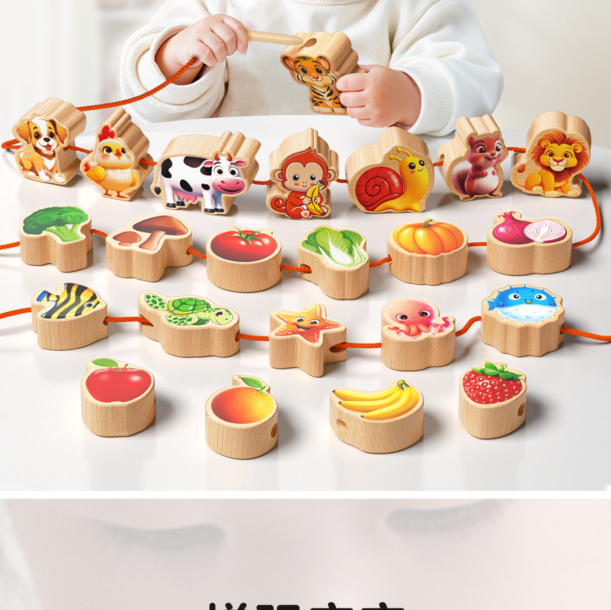 儿童实木串珠益智玩具早教穿线0到3岁宝宝精细动作专注力训练教具