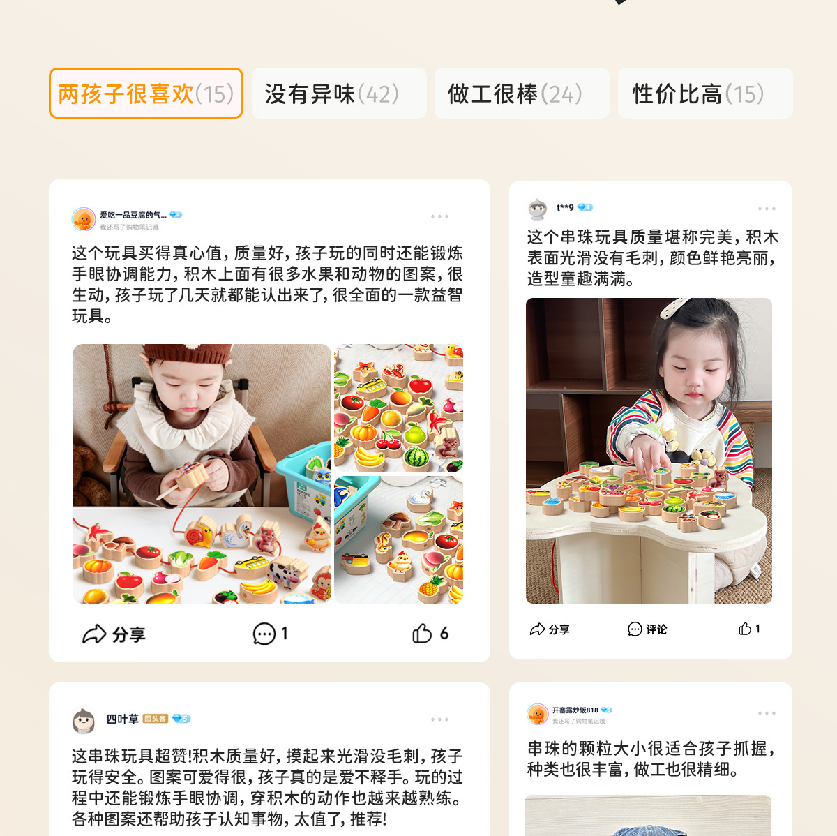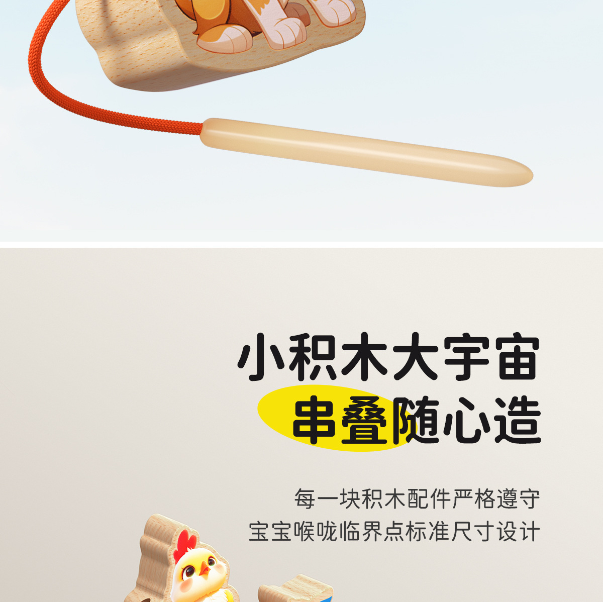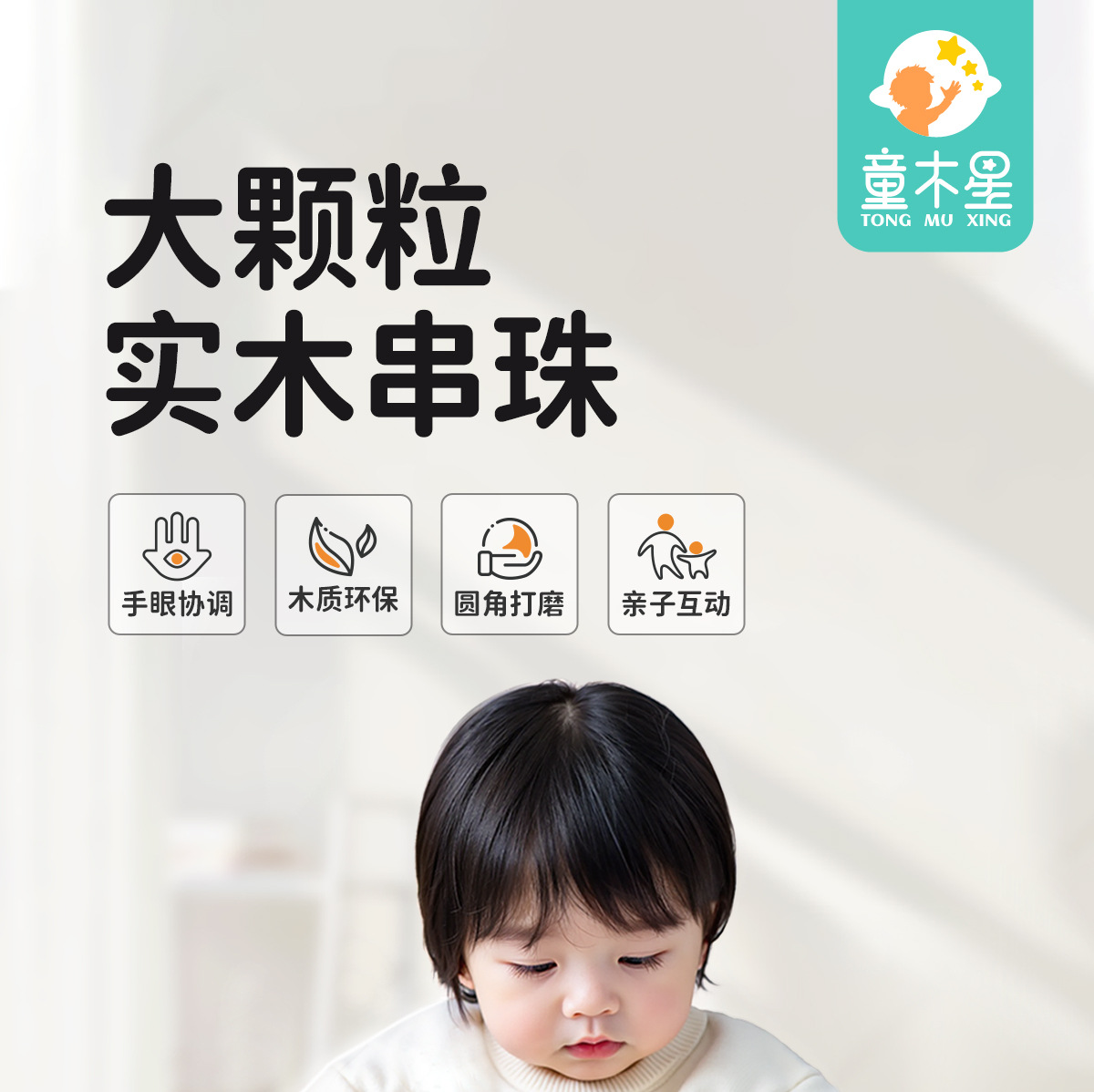 儿童实木串珠益智玩具早教穿线0到3岁宝宝精细动作专注力训练教具
