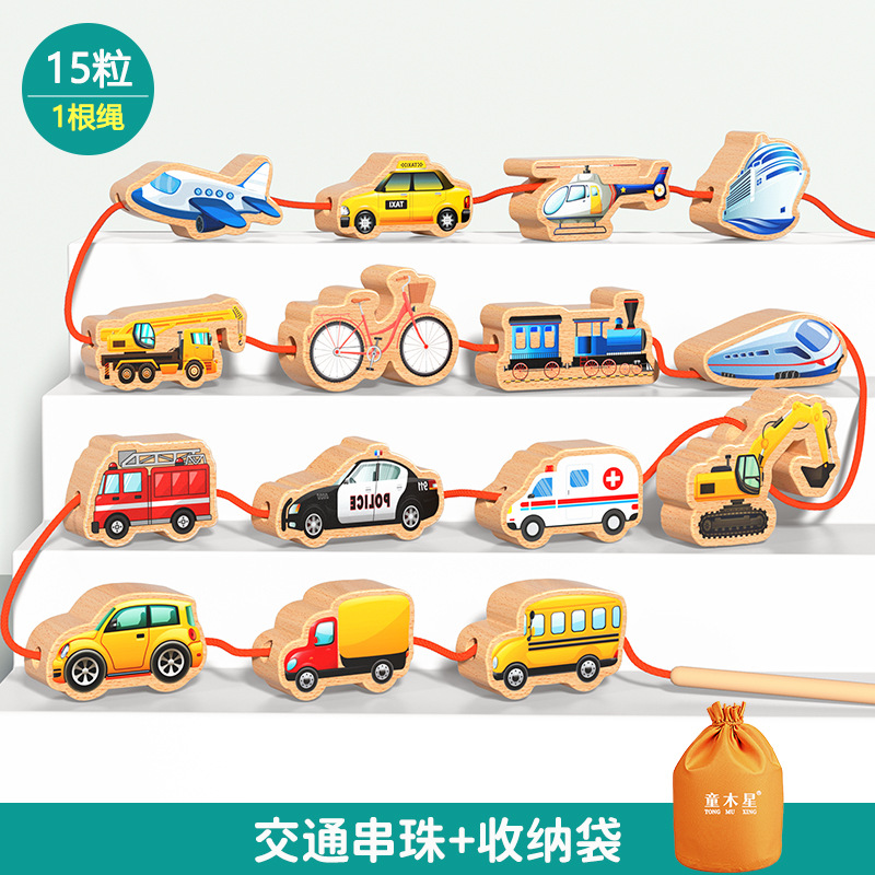 - 全实木-交通串珠15颗(1绳送收纳袋)