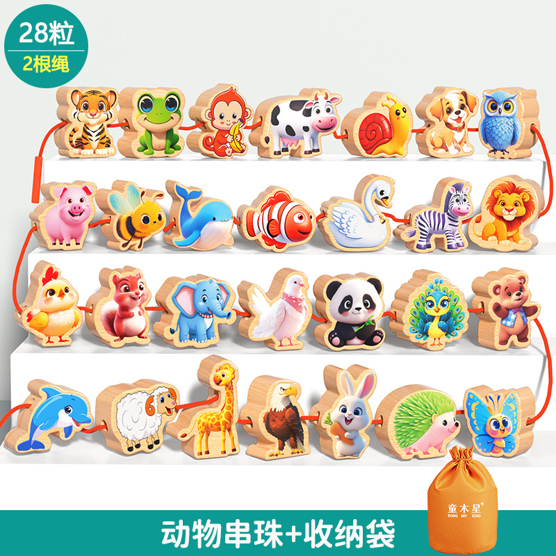 - 全实木-动物串珠28颗(2绳送收纳袋)