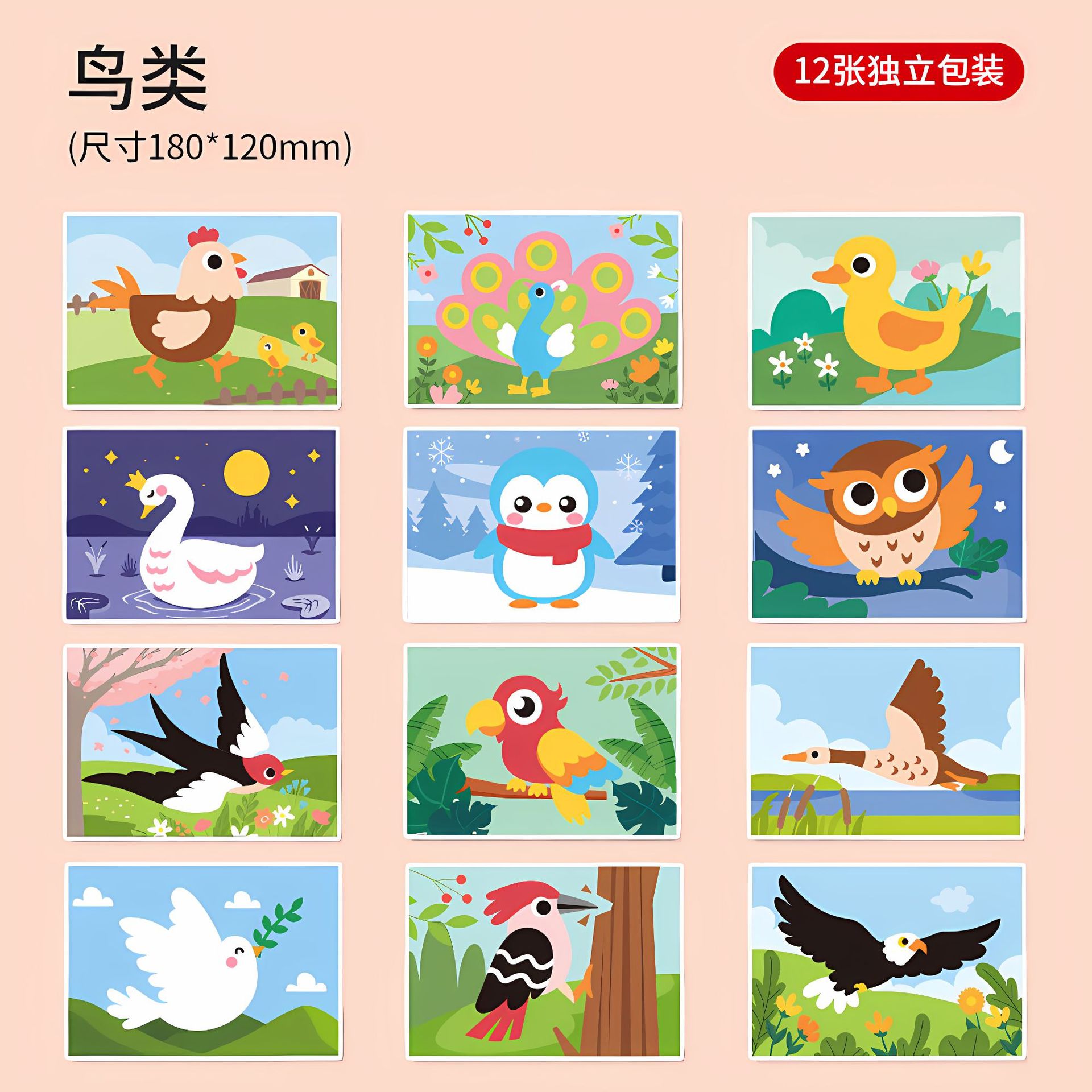 - 礼盒装鸟类主题【加厚无味12套】18*12CM