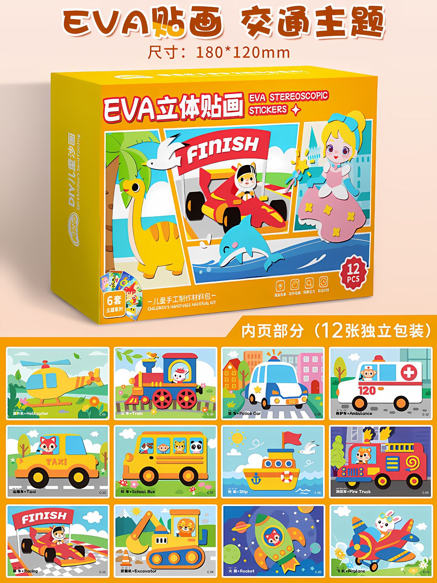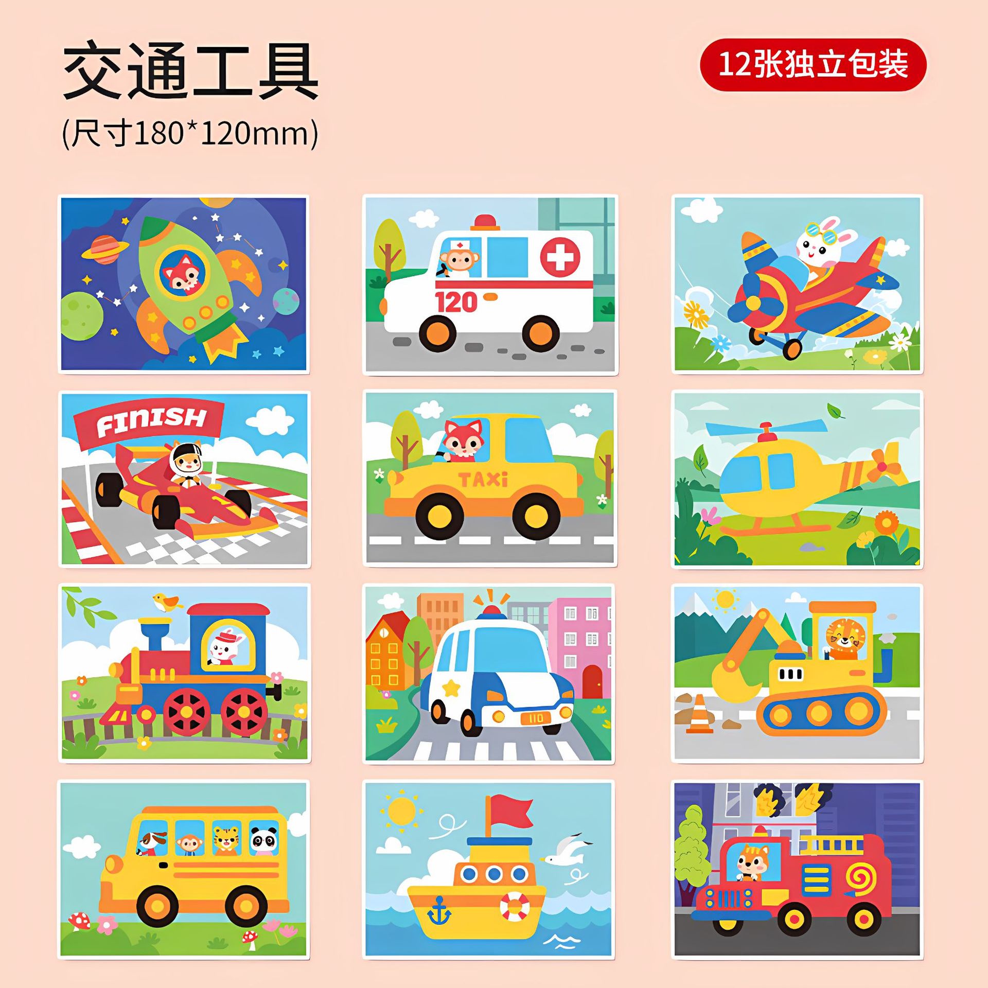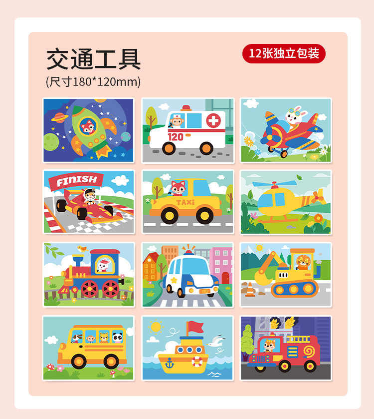 - 礼盒装交通工具【加厚无味12套】18*12CM