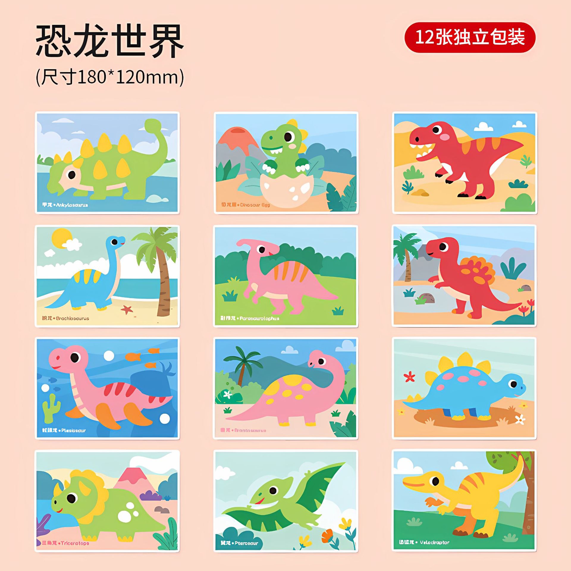 - 礼盒装恐龙世界【加厚无味12套】18*12CM