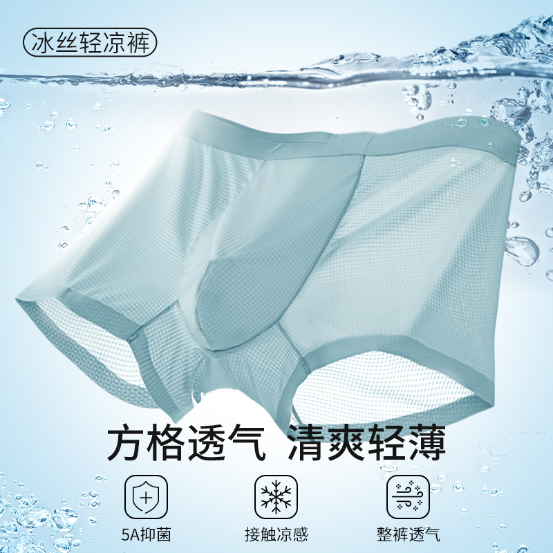 薄款冰丝内裤男高级感速干高端男士内裤无痕透气网格男式平角裤