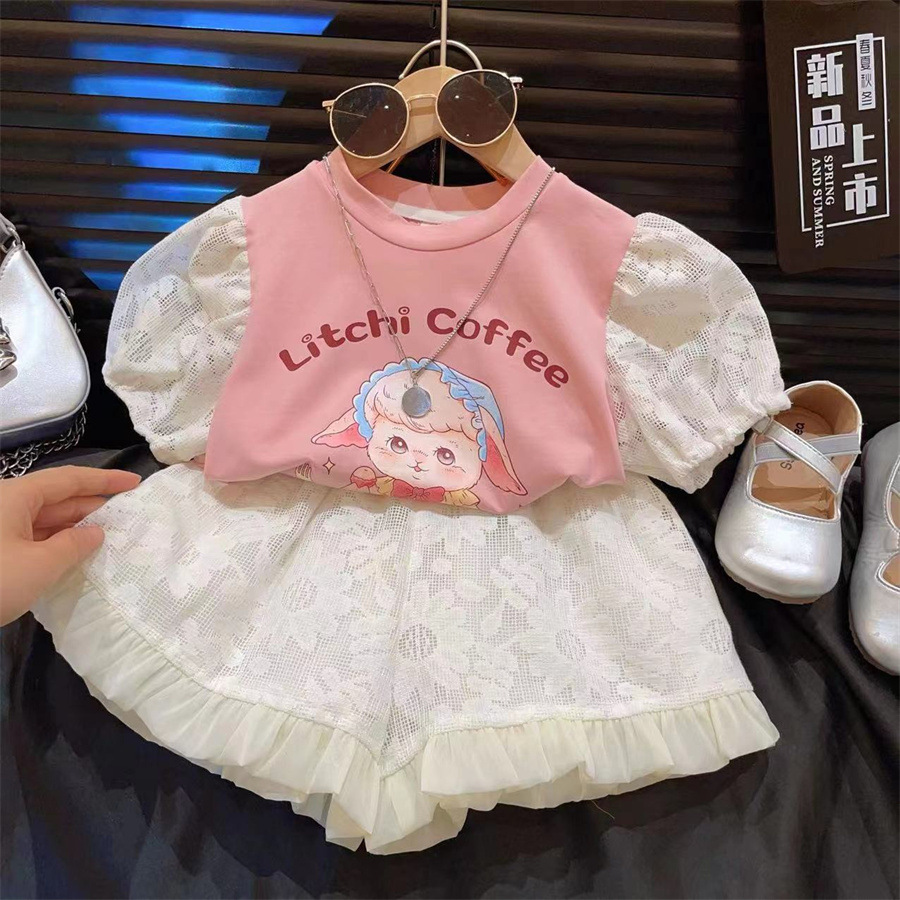 新品女童套装甜美可爱卡通小羊上衣短裤两件套2025夏季中小童新款
