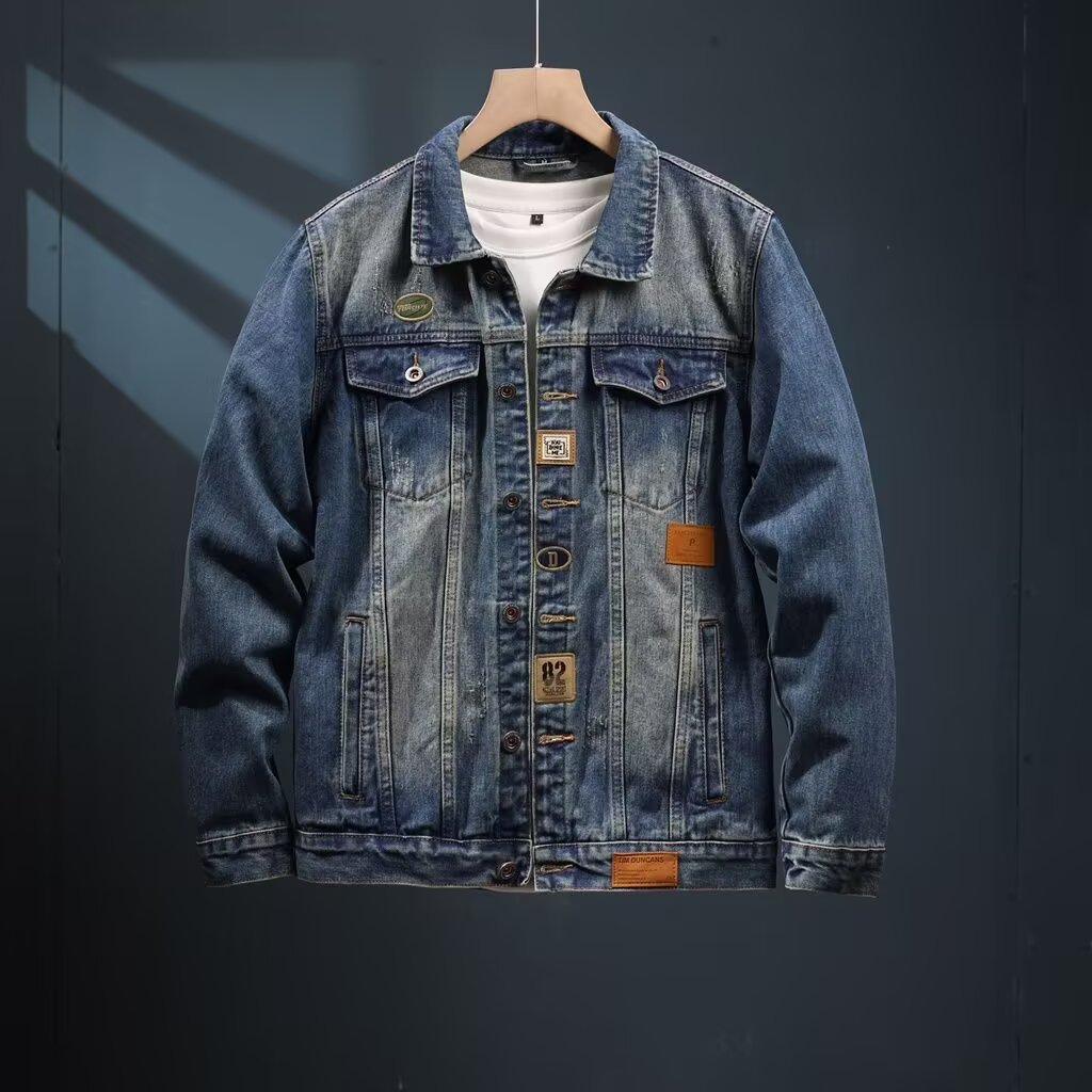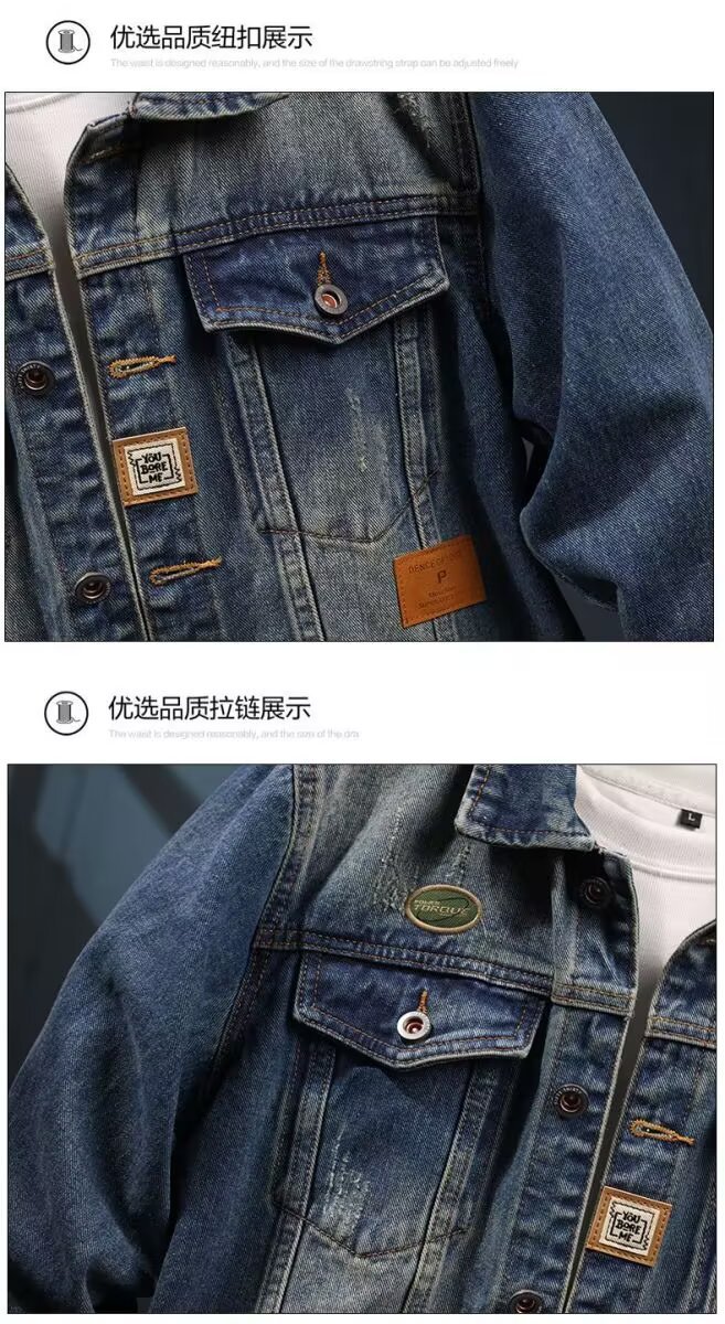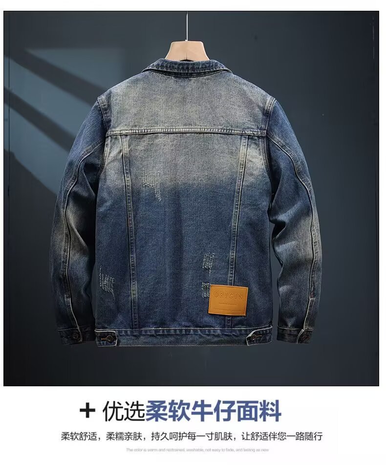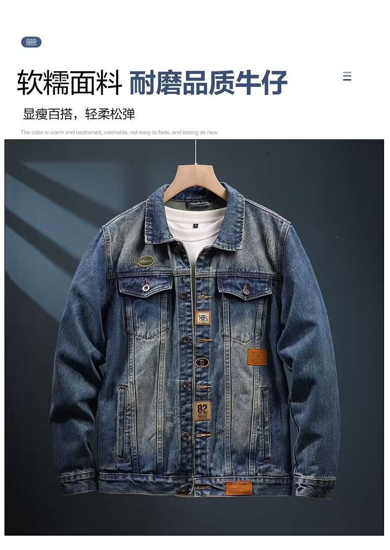 2025春秋美式高端牛仔外套男潮牌工装夹克水洗百搭外穿休闲牛仔衣