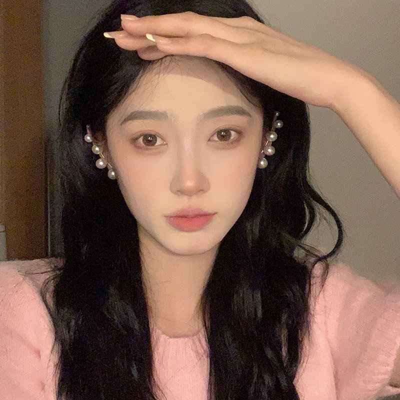 复古法式温柔珍珠精灵耳耳钉耳夹一体优雅耳环独特设计高级感耳饰