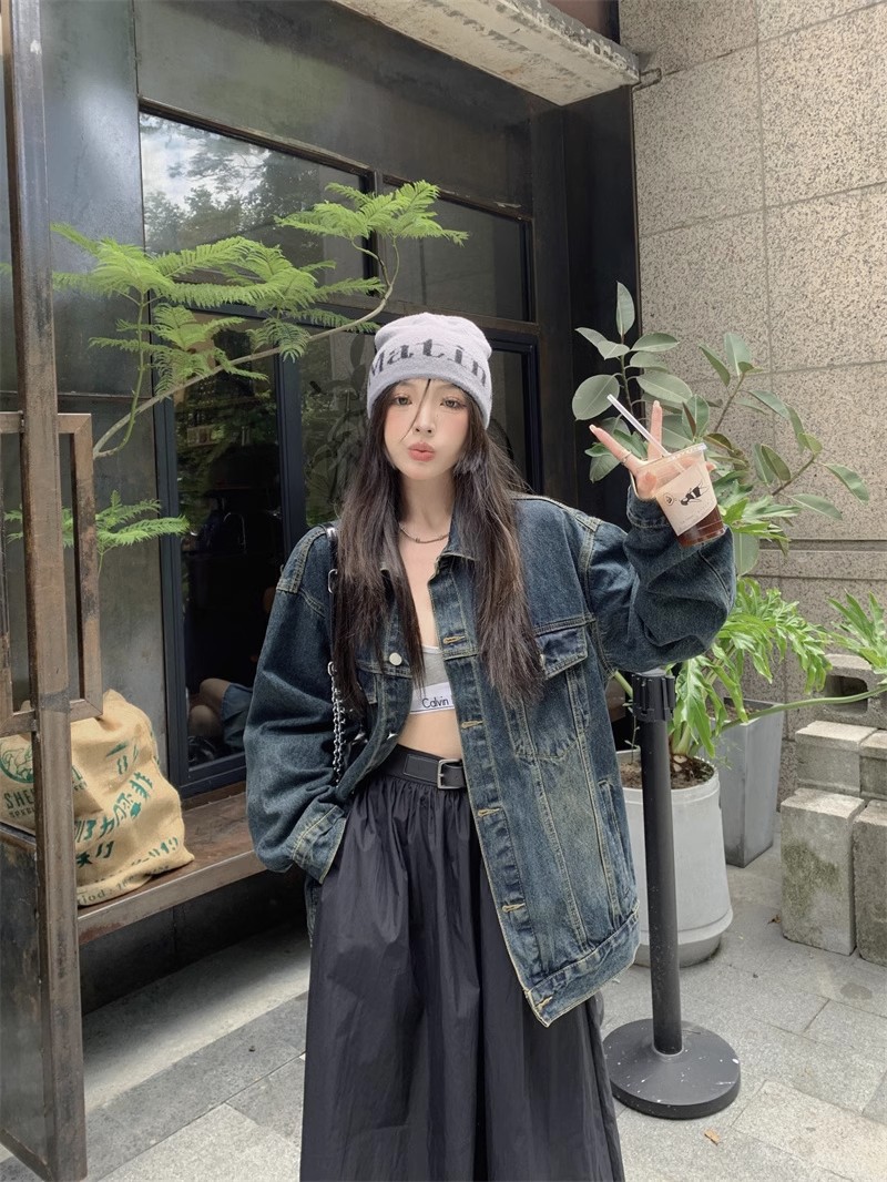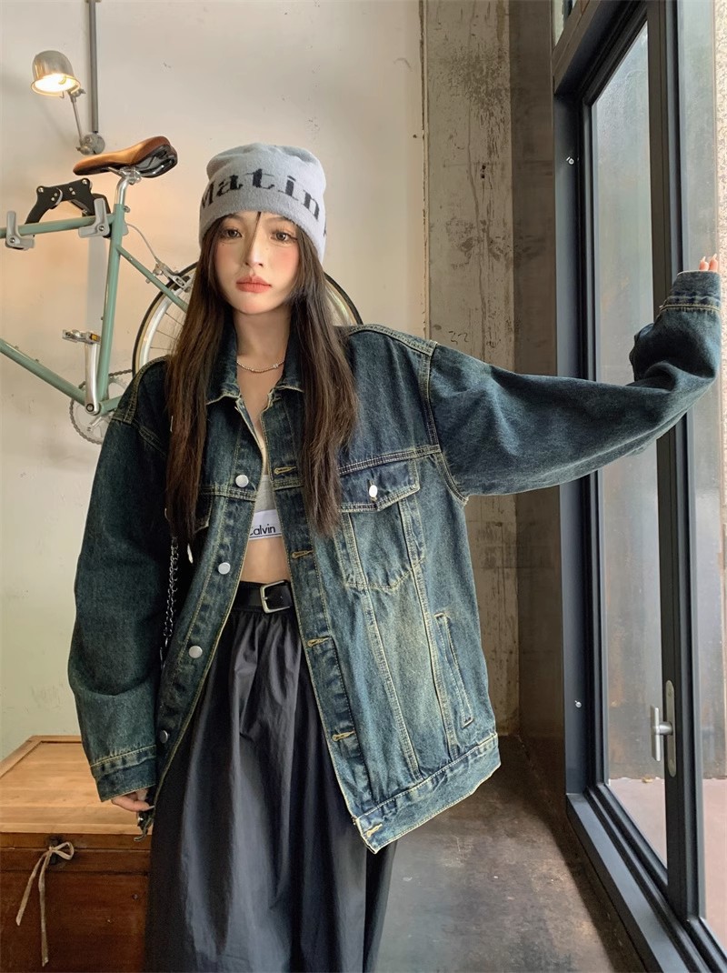 复古牛仔衣高级感外套女装秋季新款宽松休闲美式夹克爆款上衣