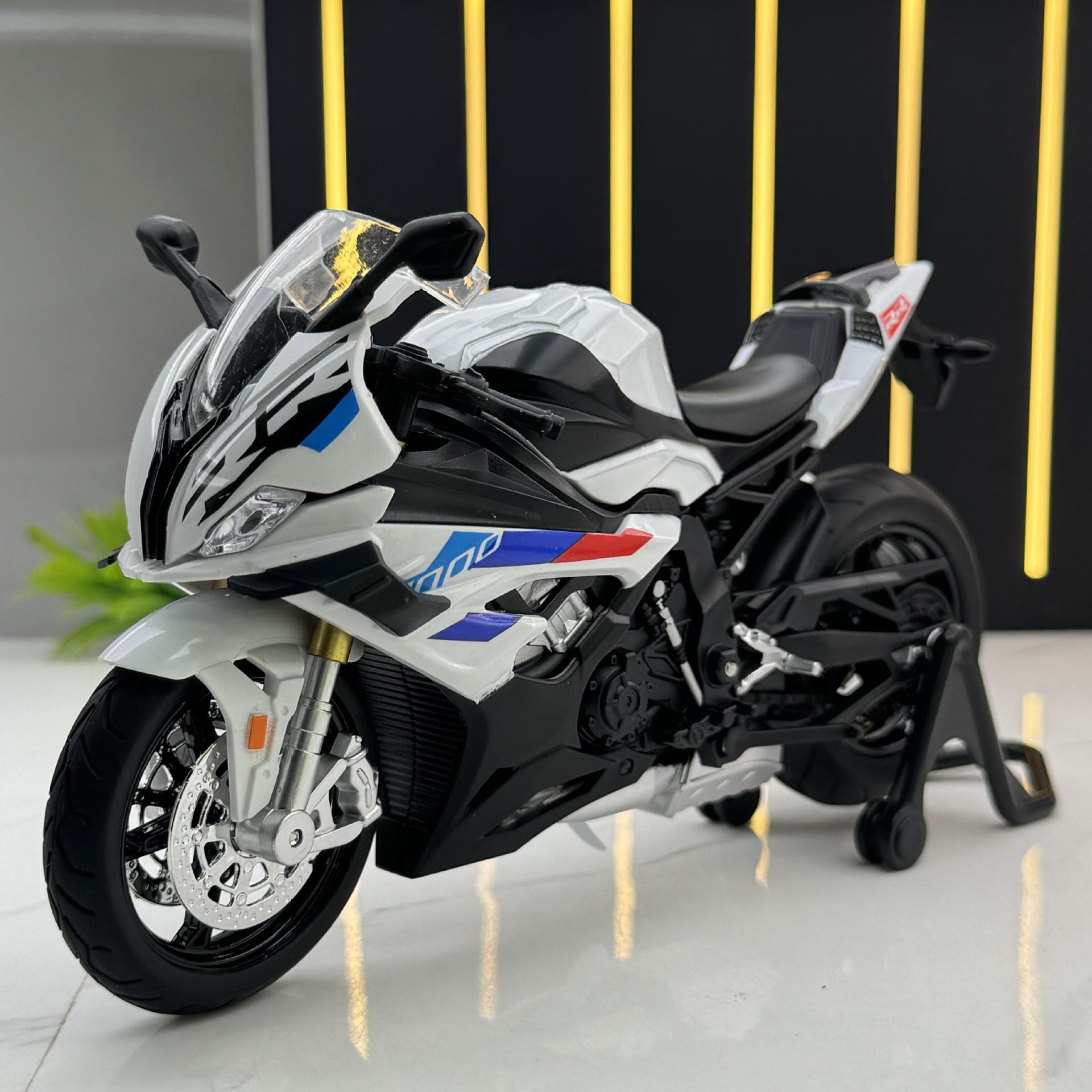 华一合金车模1比12宝马RRS1000摩托车声光滑行玩具车音乐模型摆件