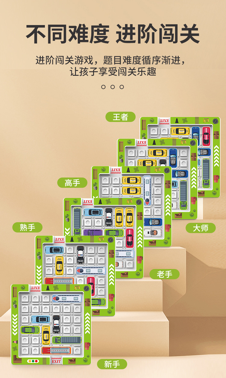 汽车华容道玩具儿童逻辑思维训练益智停车场大冒险迷宫玩具