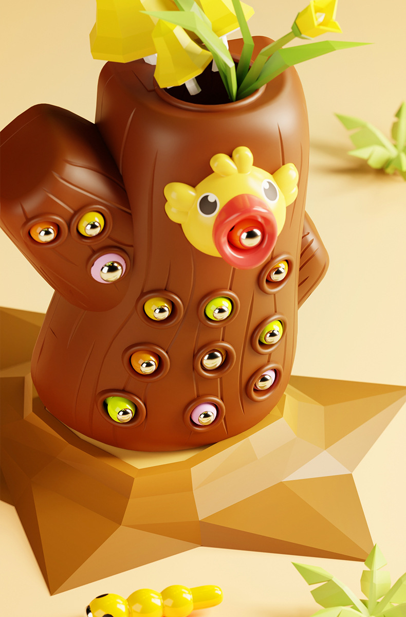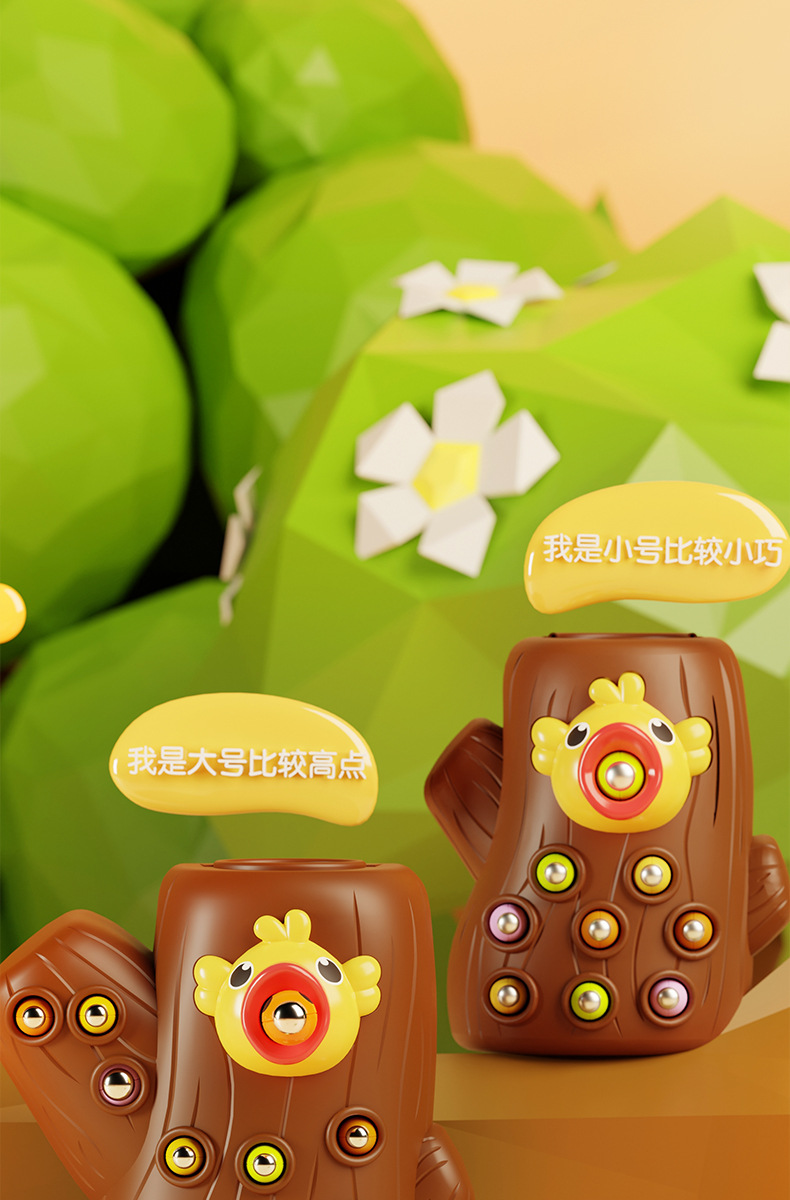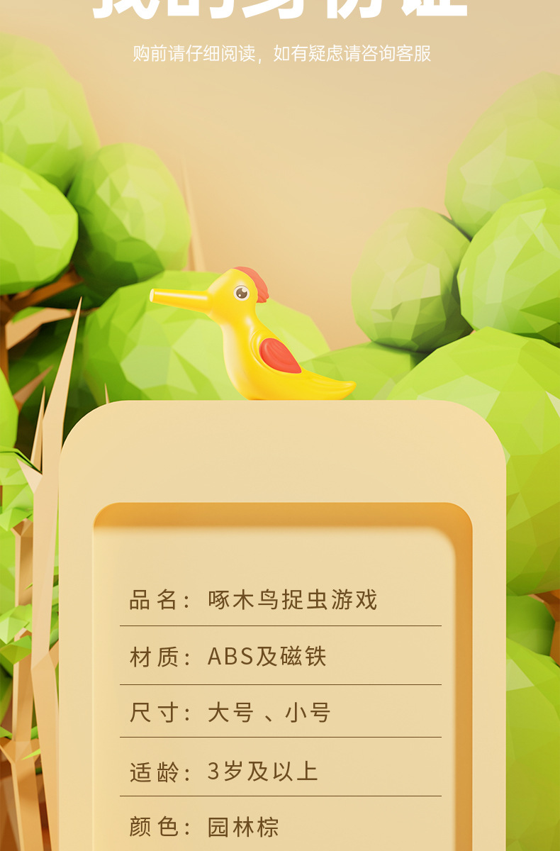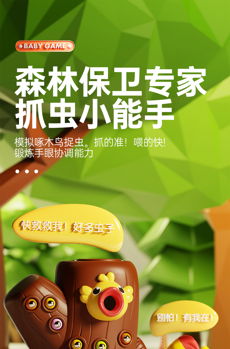 【经典款】捉虫啄木鸟(1树桩+1鸟+8虫)电商盒