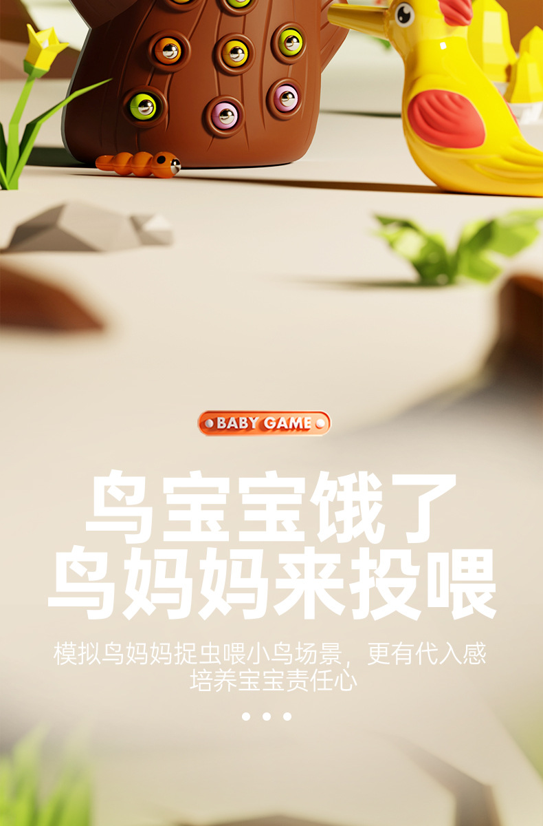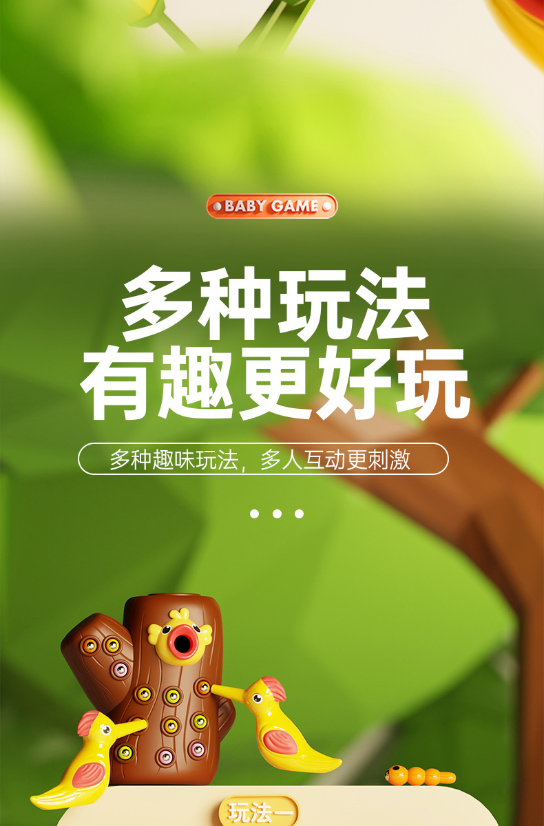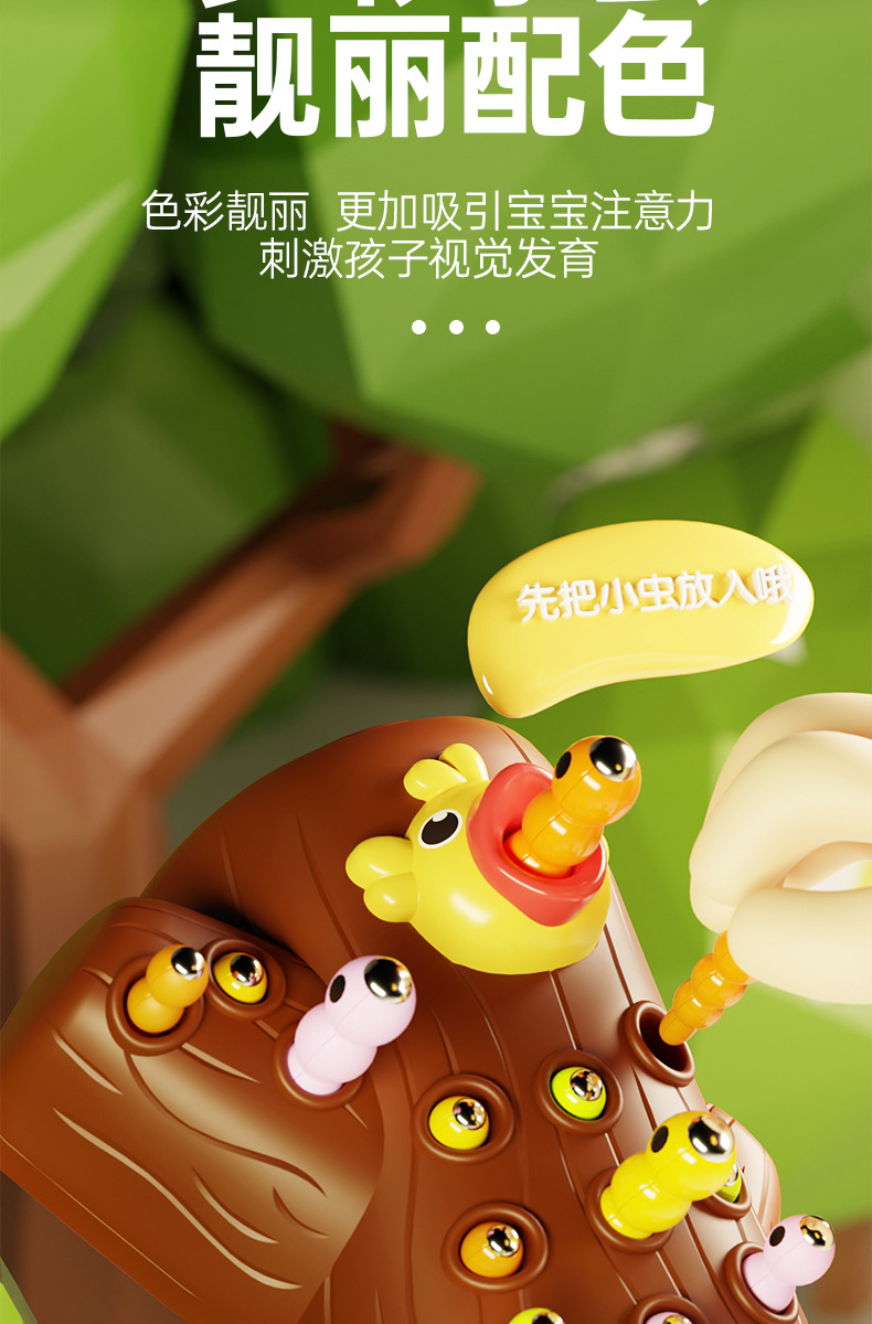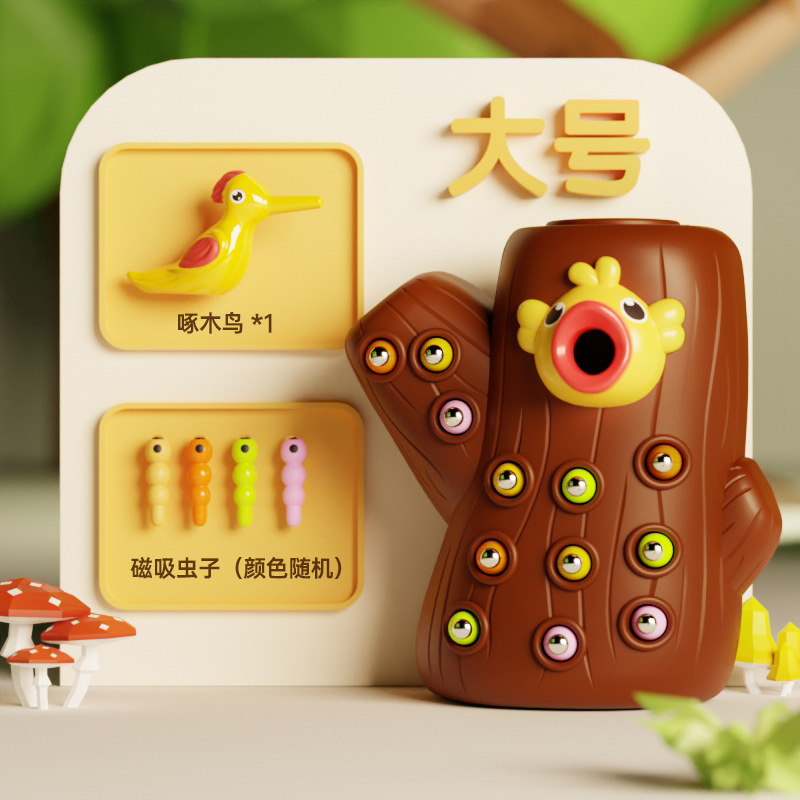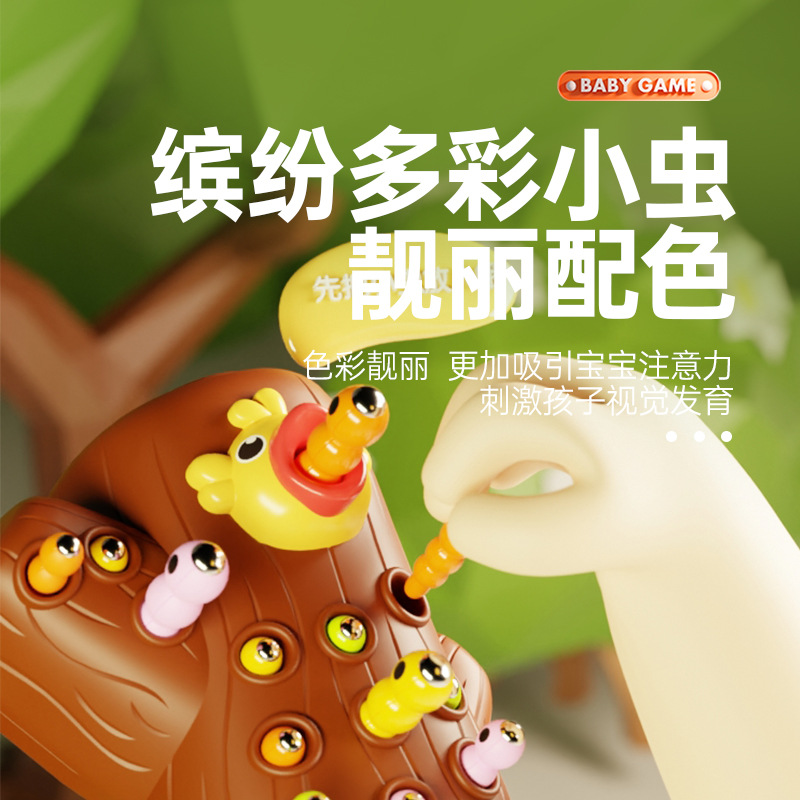 儿童啄木鸟玩具益智早教钓鱼捉虫小游戏磁性磁力抓虫玩具手眼协调
