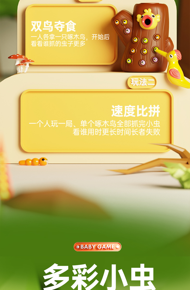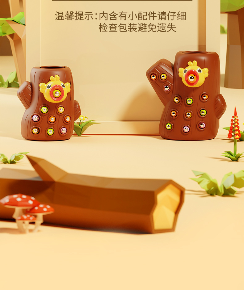 【经典款】捉虫啄木鸟(1树桩+2鸟+20虫)电商盒