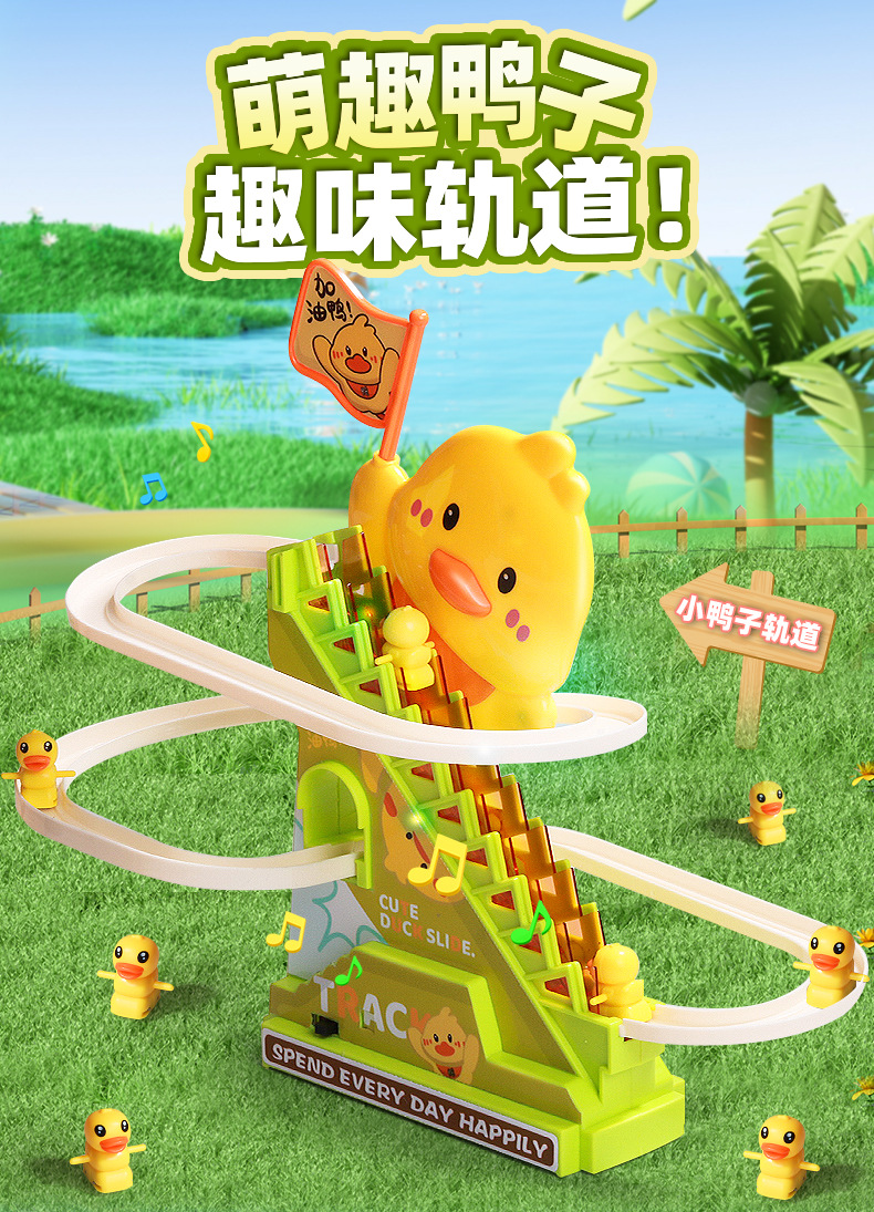 儿童电动小鸭子爬楼梯益智玩具小黄鸭滑行轨道宝宝抬头训练1-3岁