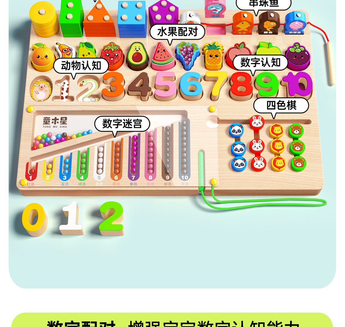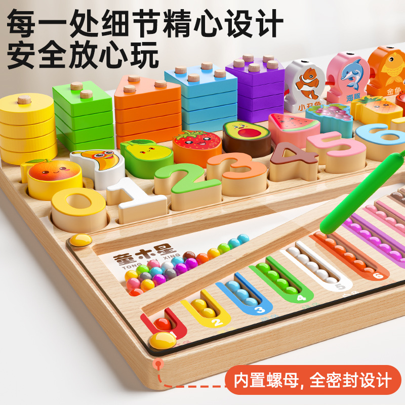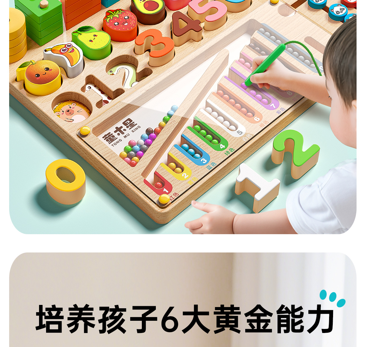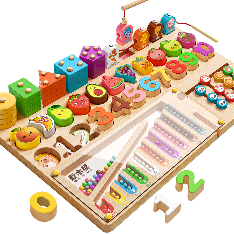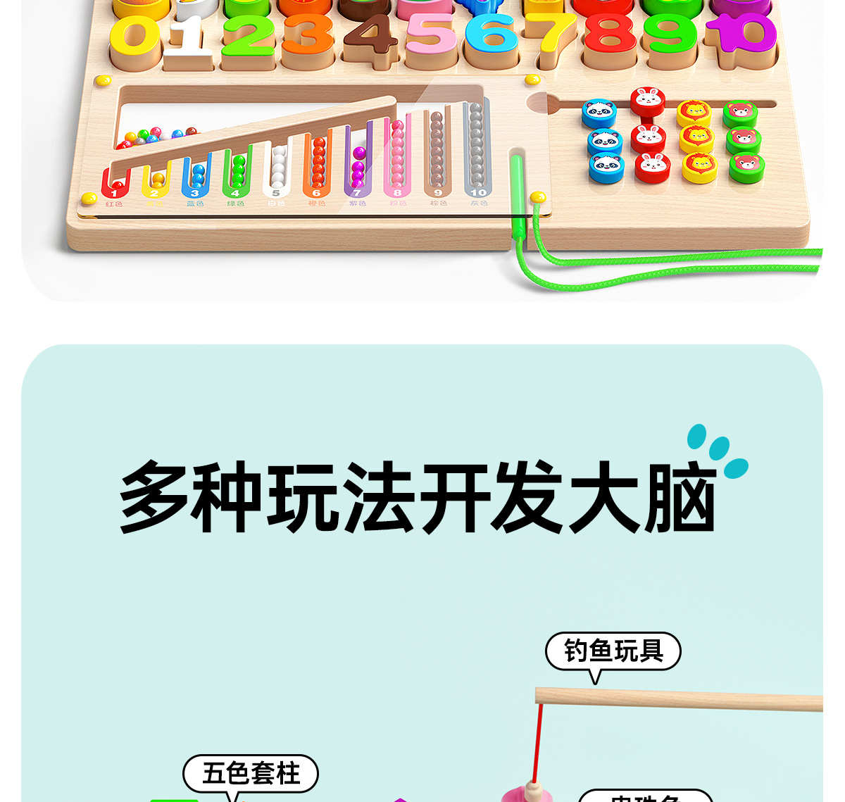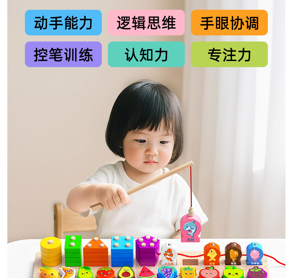 六合一【数字+形状+钓鱼+套圈+加减运算+串珠鱼】