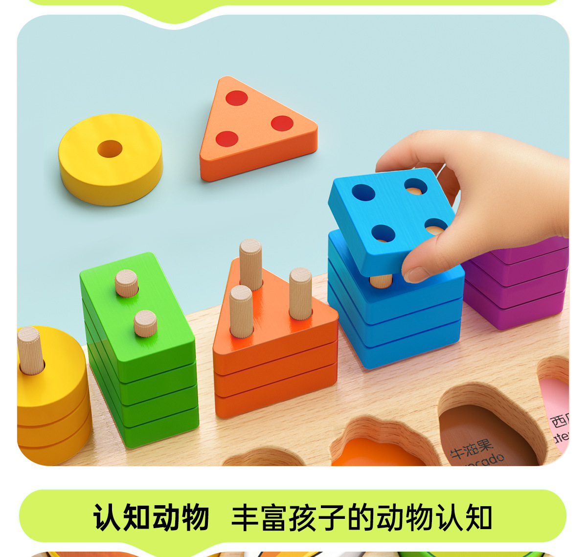 儿童益智玩具蒙氏早教拼图男孩女孩三岁思维训练几何配对拼装积木