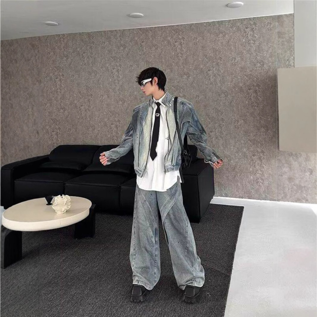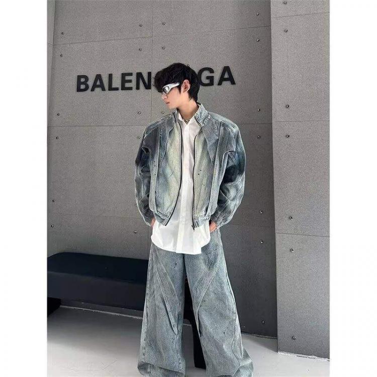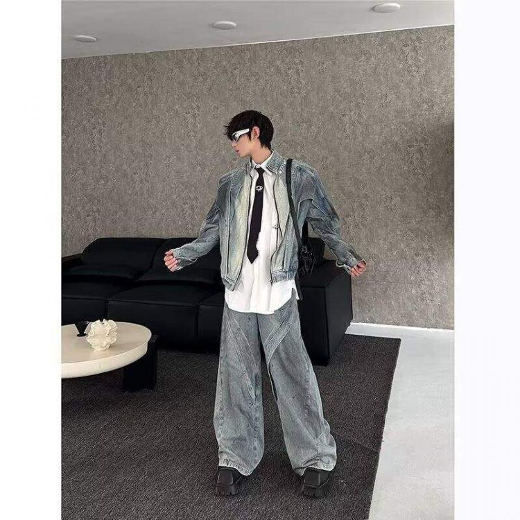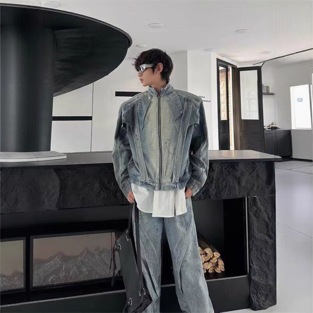 水洗蓝色解构短款牛仔外套男春秋季小众设计感牛仔衣美式高街夹克