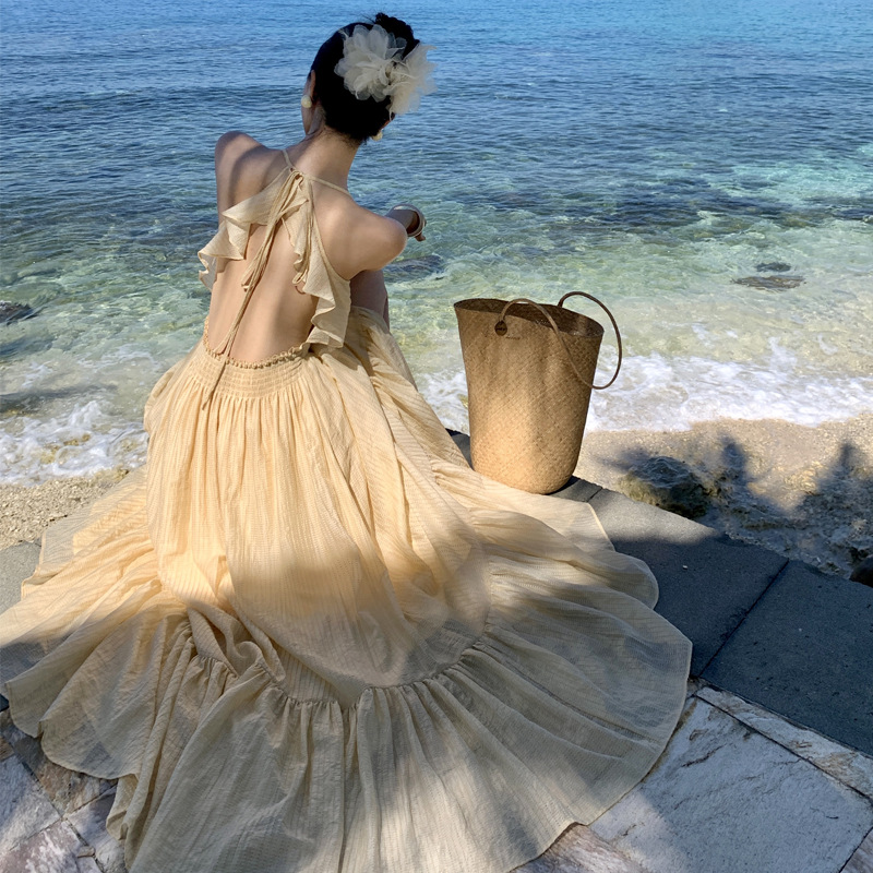 超仙海边度假连衣裙女夏季露背吊带长裙高级氛围感旅游拍照仙女裙