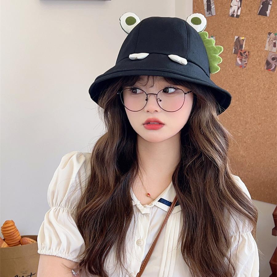 可爱恐龙帽子春夏季渔夫帽防晒遮阳帽学生日系韩版百卡通盆帽