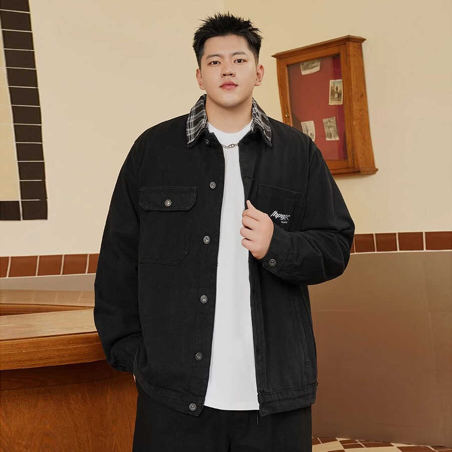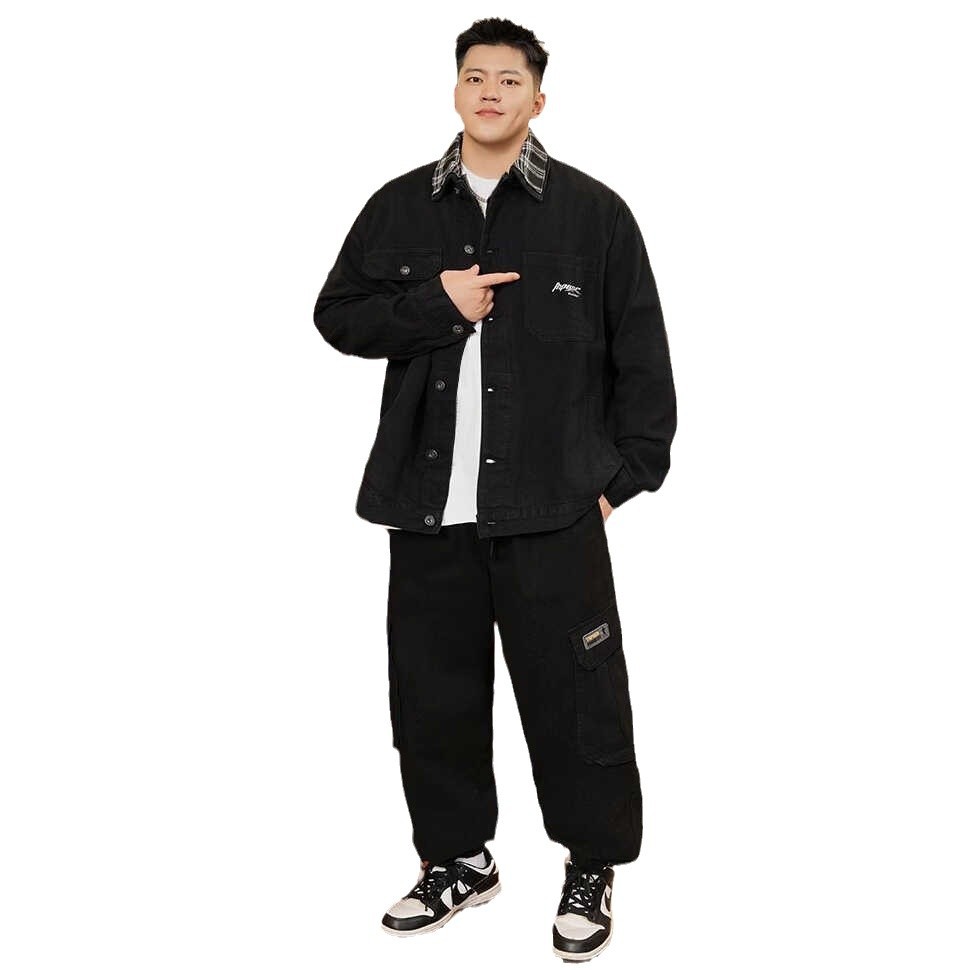 潮牌大码男装牛仔外套春秋季宽松胖子加肥加大刺绣百搭夹克褂子男