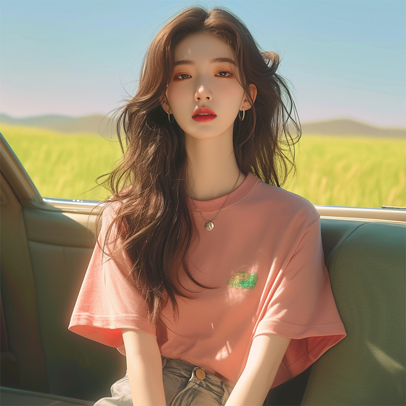 洋气独特超好看别致绝美漂亮多巴胺上衣橘粉色正肩短袖t恤女夏季