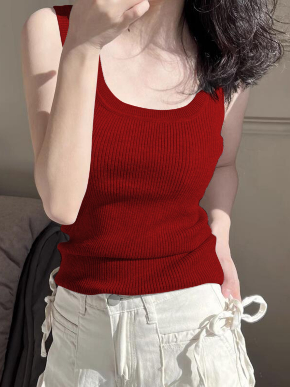 无袖针织t恤女夏季纯欲设计感小众性感上衣